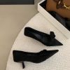 / French velvet side bow-tie pointed-toe women’s high heels 3236-8