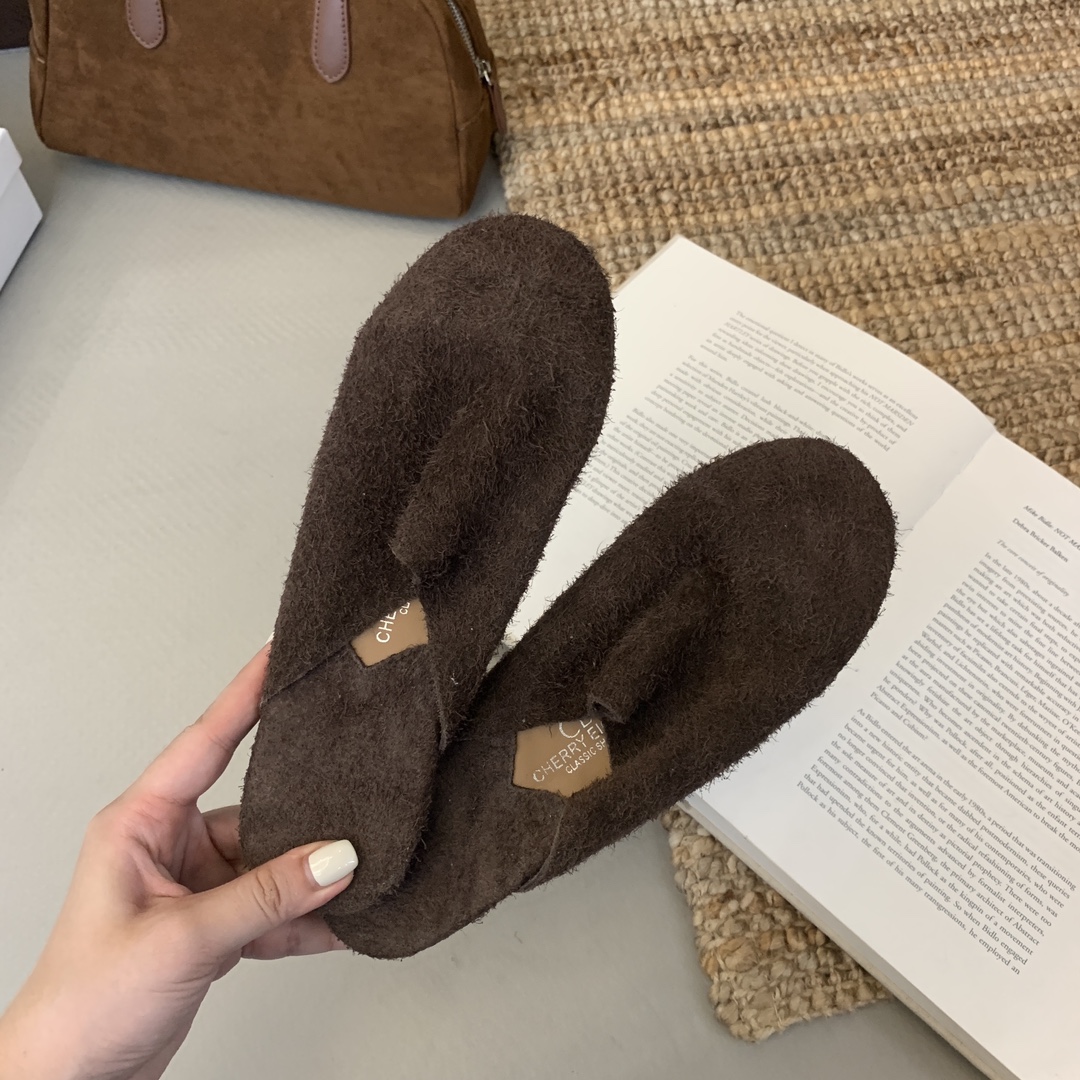 Retro round-toe closed-toe flat comfortable half-slip women’s shoes 6886-1
