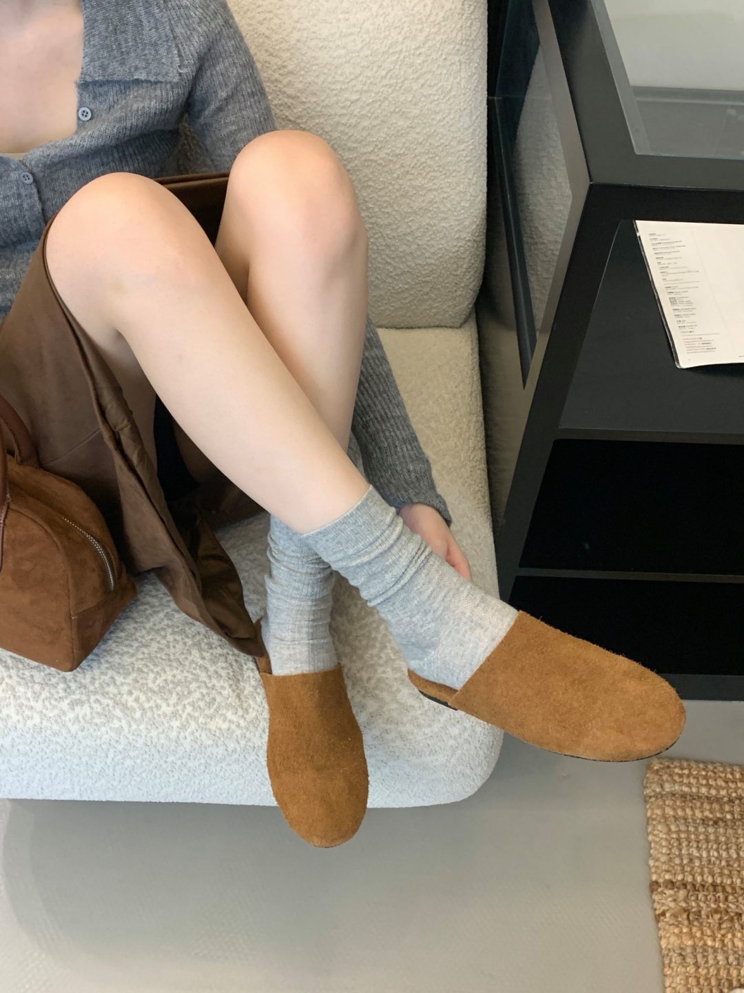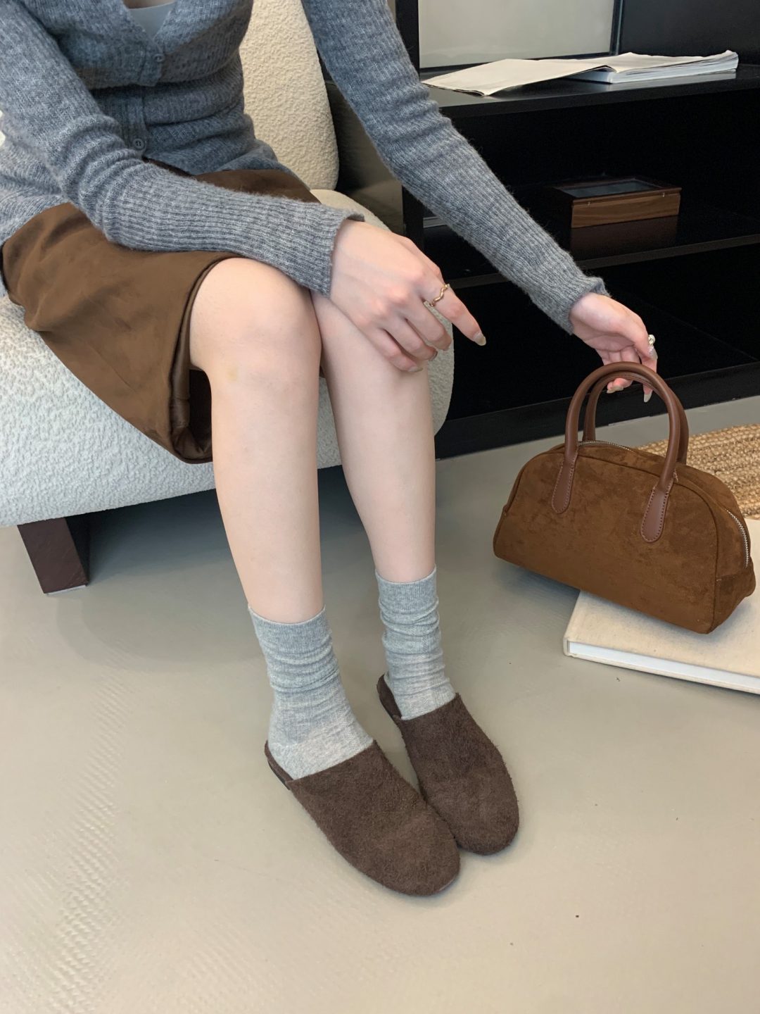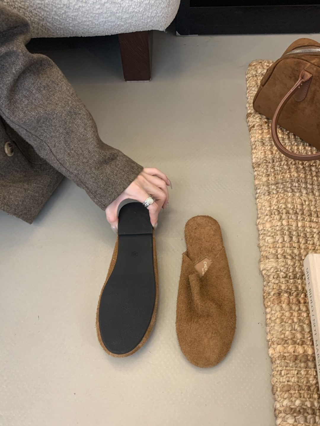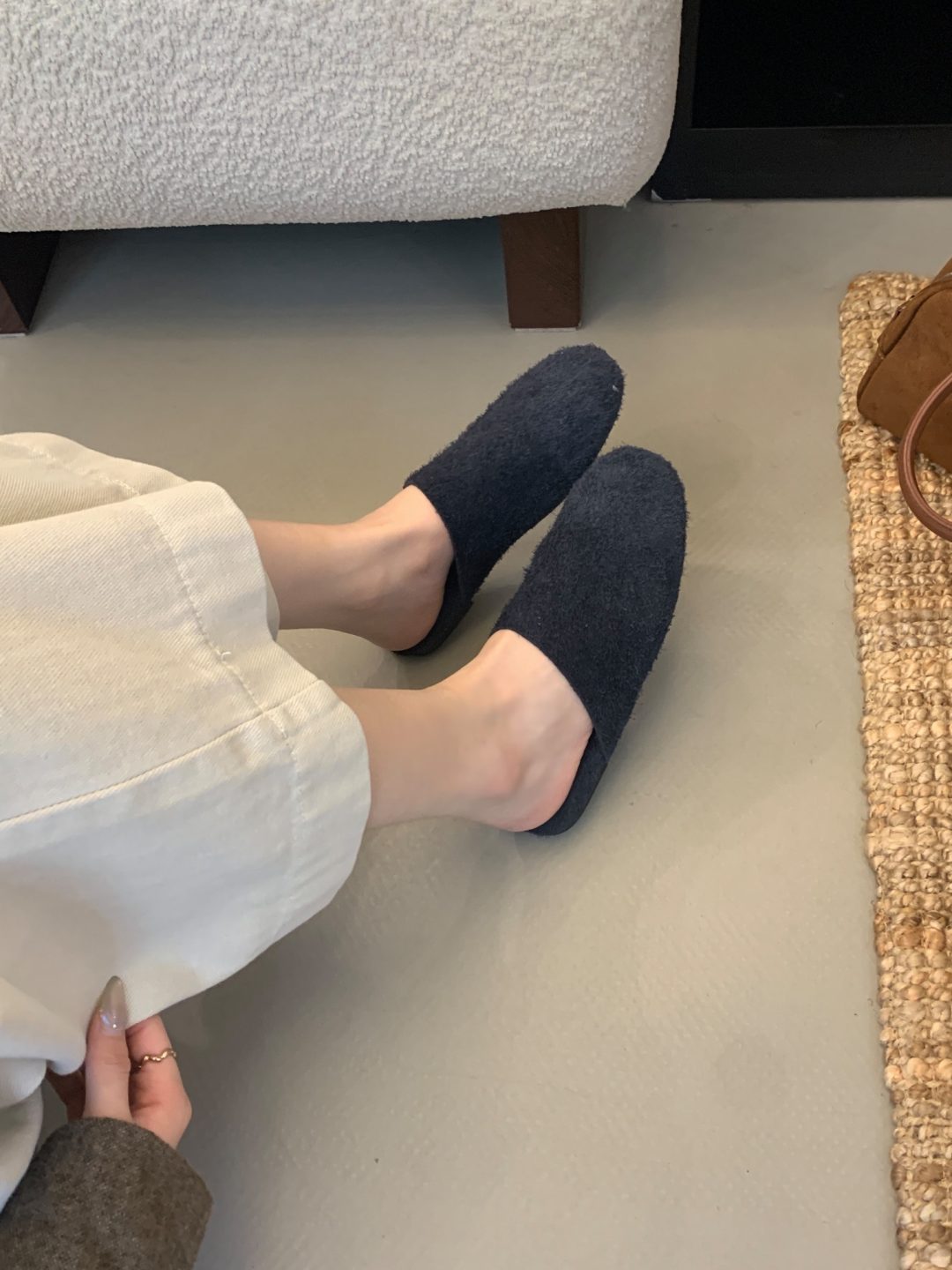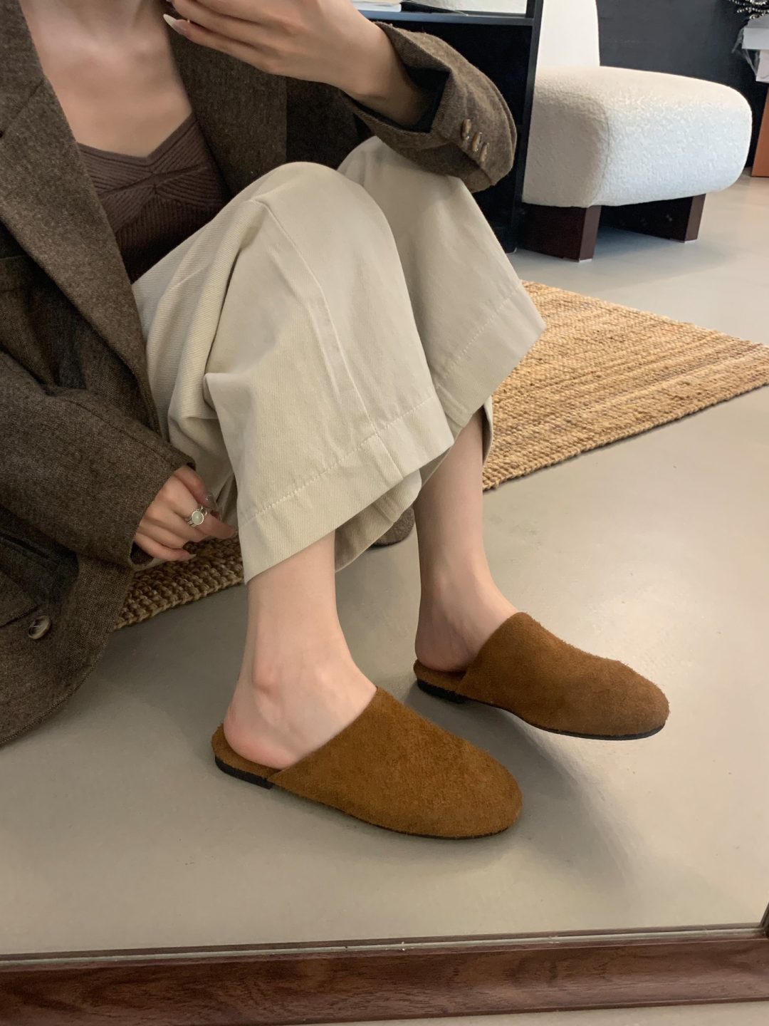 Retro round-toe closed-toe flat comfortable half-slip women’s shoes 6886-1