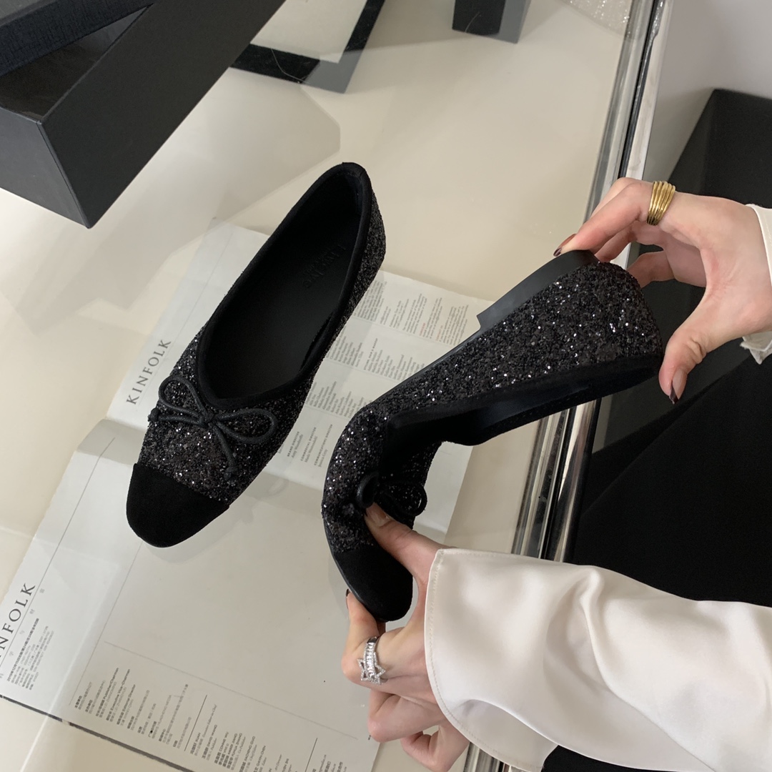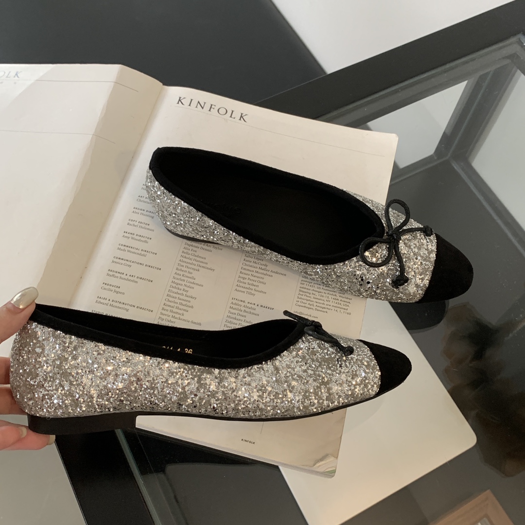 + Free ShippingNew Spring-Autumn French-style Elegant and Comfortable Sequin Flat Women’s Shoes