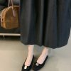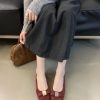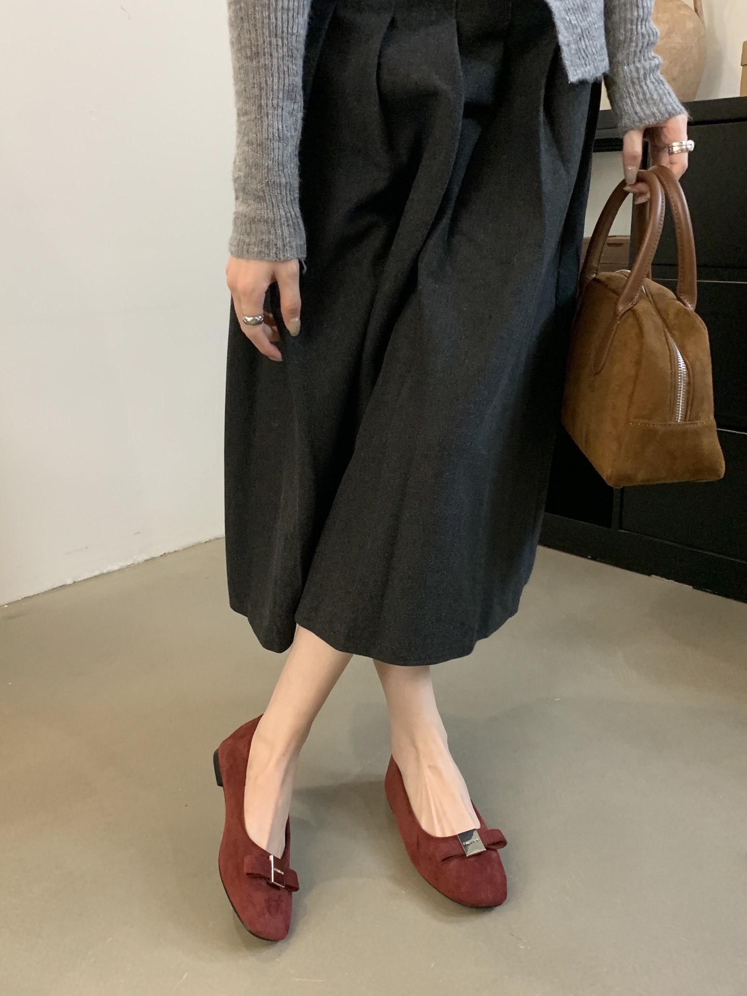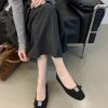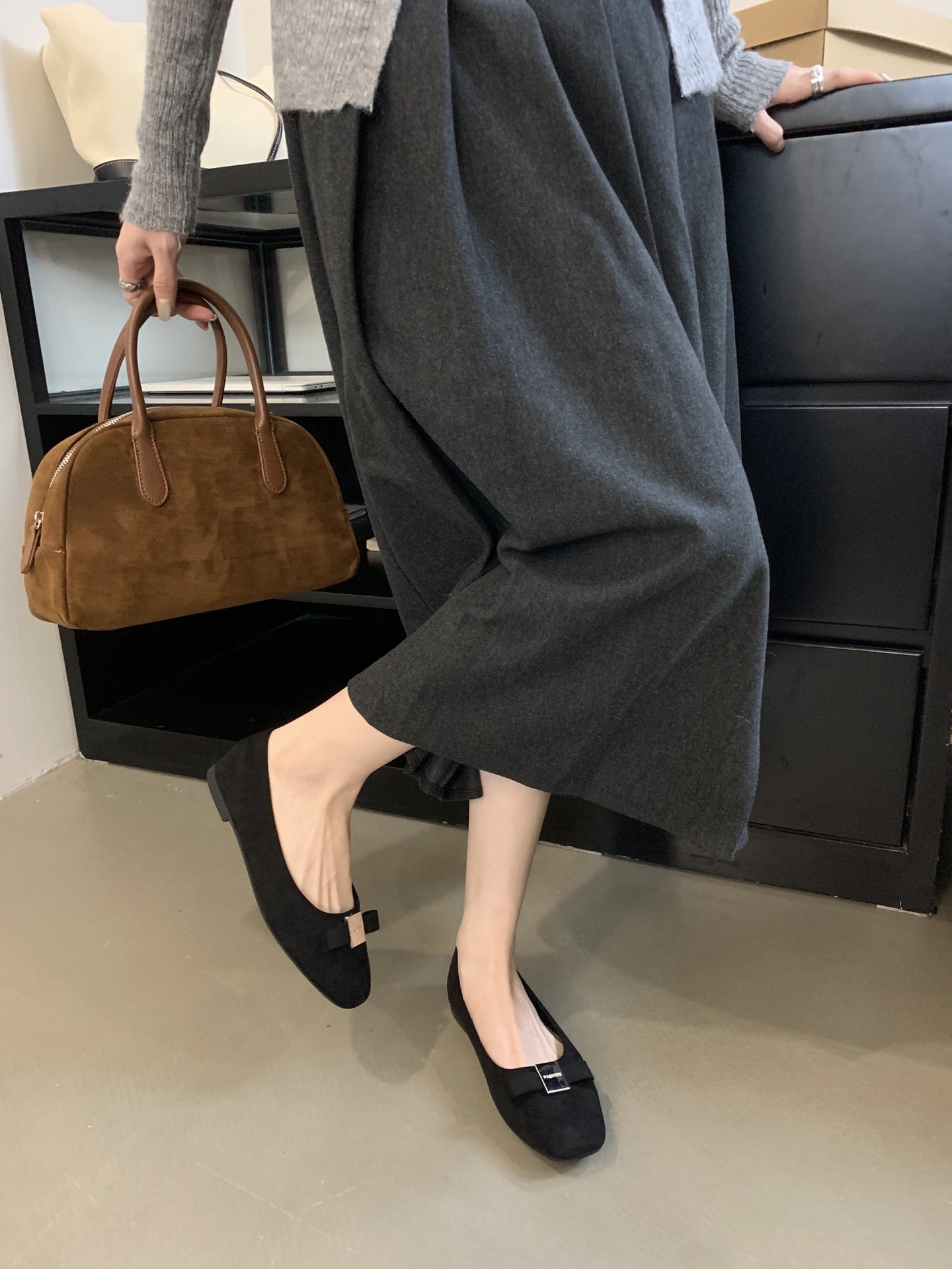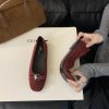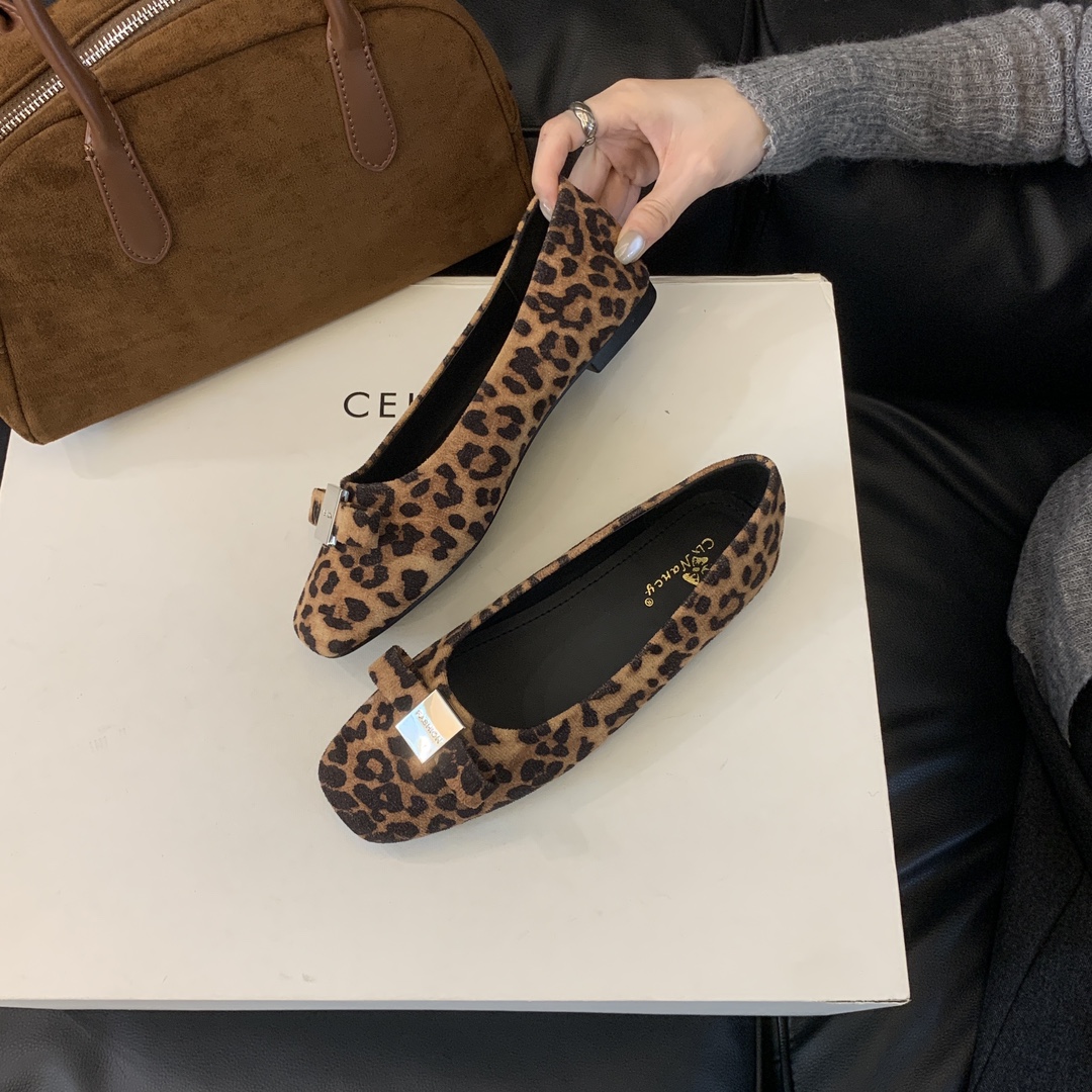 French-style square-toed bowknot metal buckle suede flat ballet flats for women