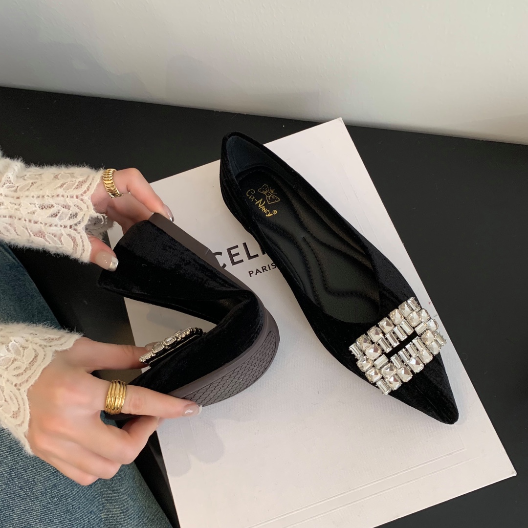 Shallow-cut pointed-toe elegant and gentle soft-sole soft-leather flat women’s shoes