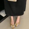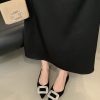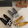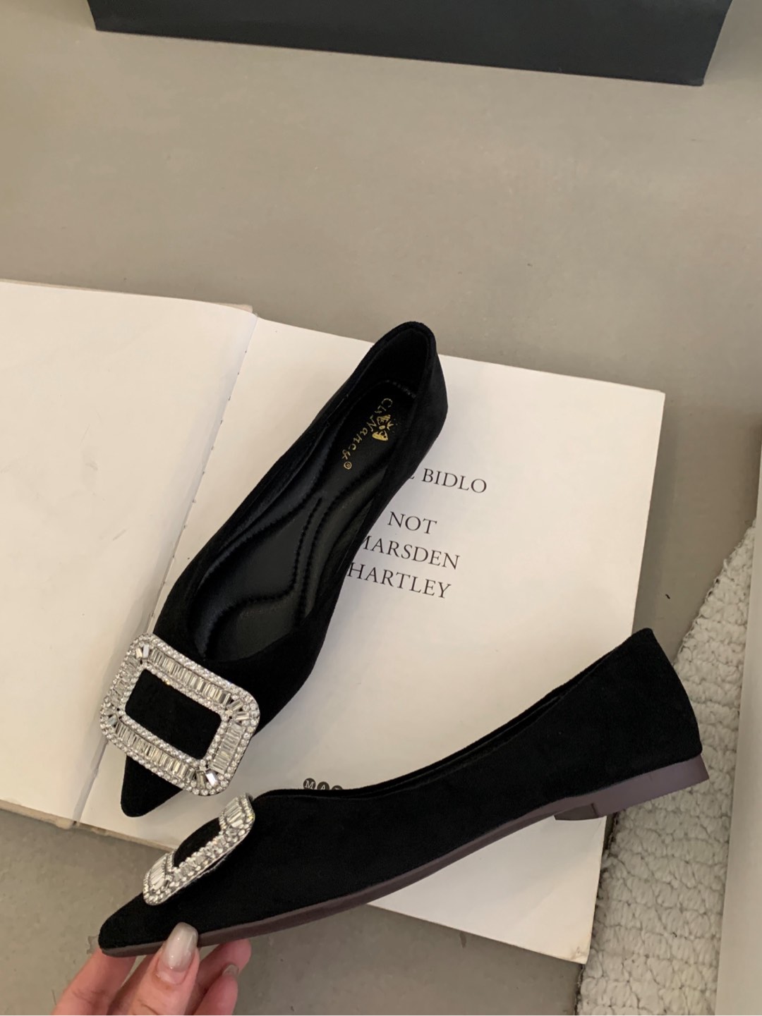 Elegant flat pointy-toe shoes adorned with rhinestones and a square buckle, perfect for a chic French-inspired commute 619-225