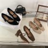 French-style shallow-mouth women’s flats with versatile chunky heels 173-6