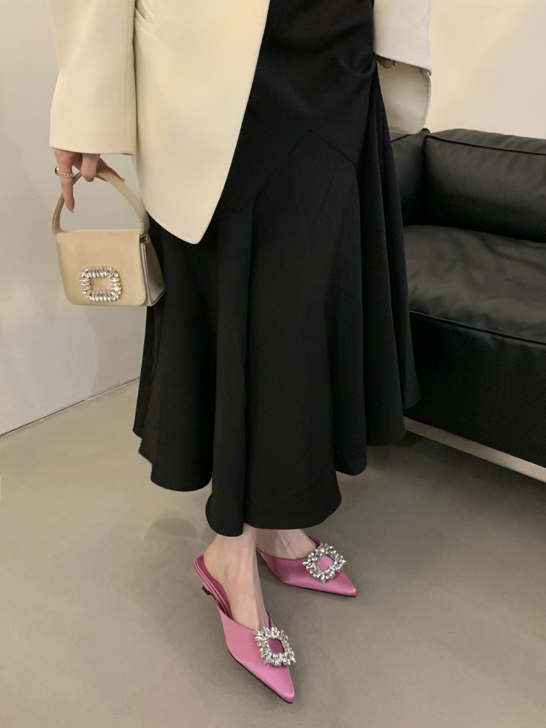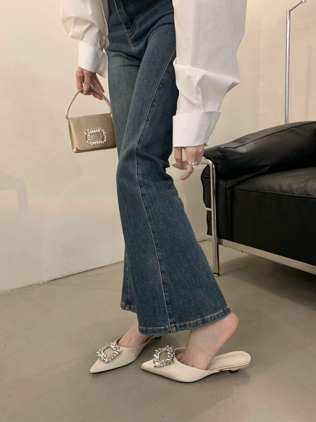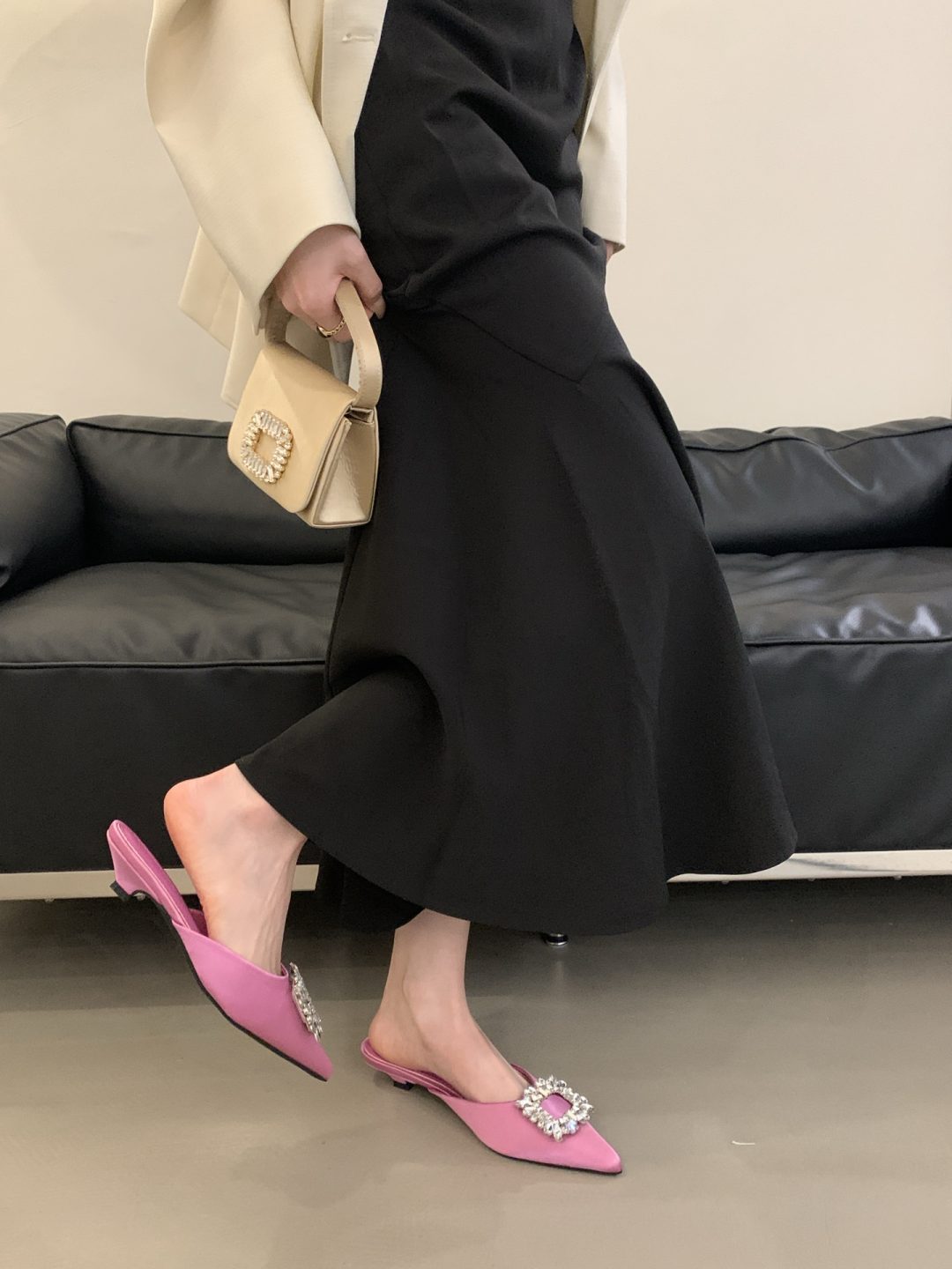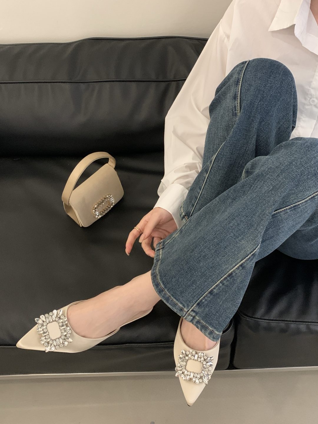 Elegant pointed-toe rhinestone square buckle women’s outdoor slipper 1168-2