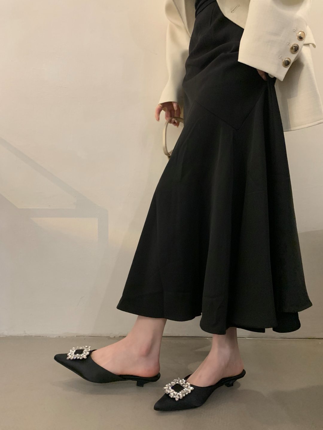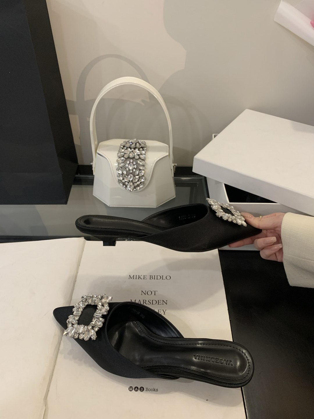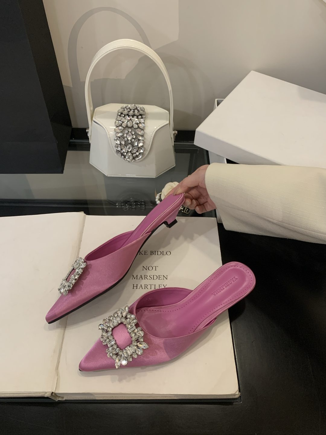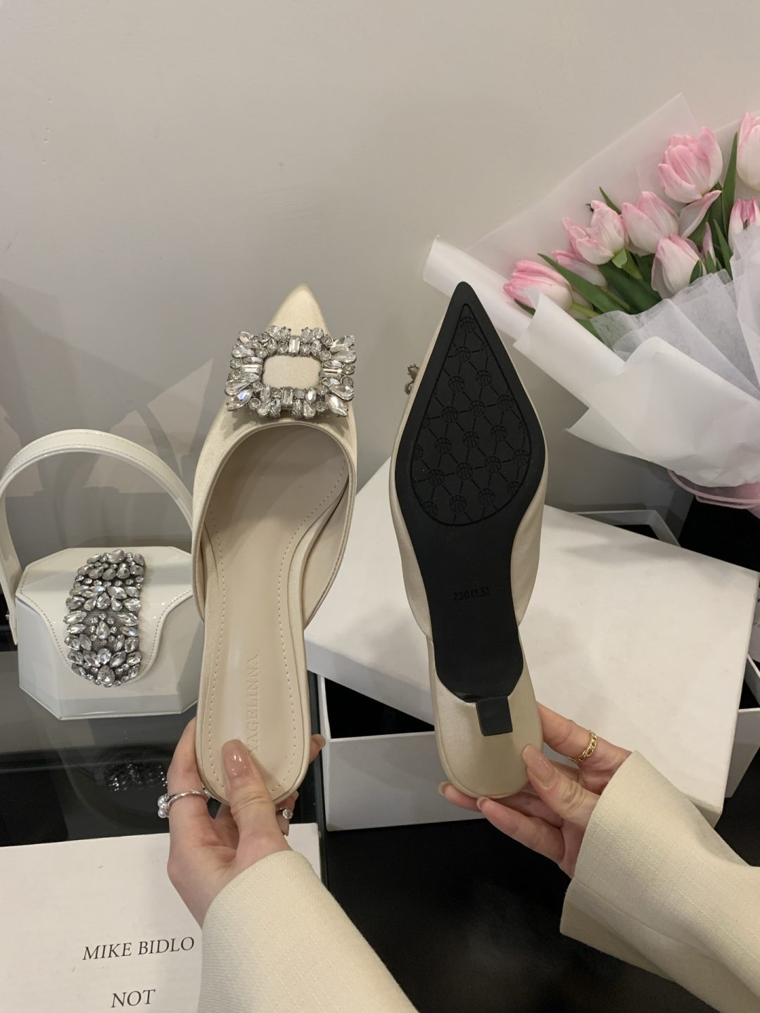 Elegant pointed-toe rhinestone square buckle women’s outdoor slipper 1168-2
