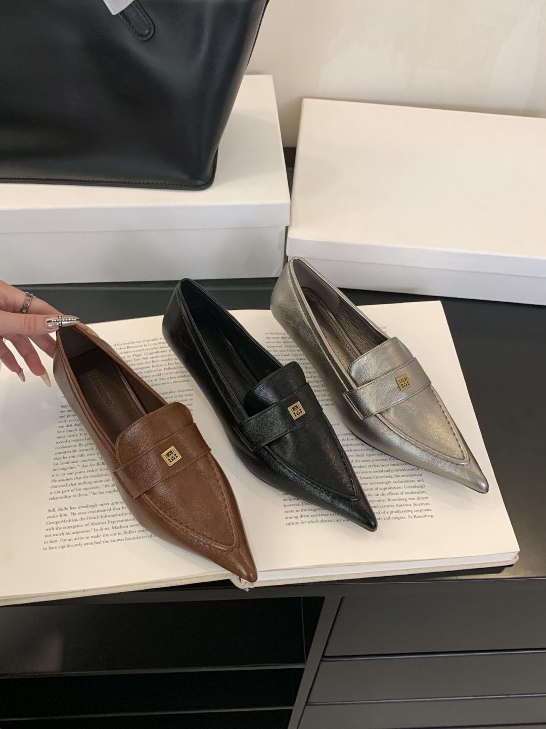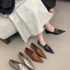 + Free ShippingNew vintage-style closed-toe soft leather women’s single shoes with French elegance, featuring pointed toes and slim low heels, available in black, brown, and iron gray.
