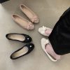 + Free ShippingFrench-style new round-toe bow-tie shallow-cut soft leather gentle and comfortable flat women’s shoes