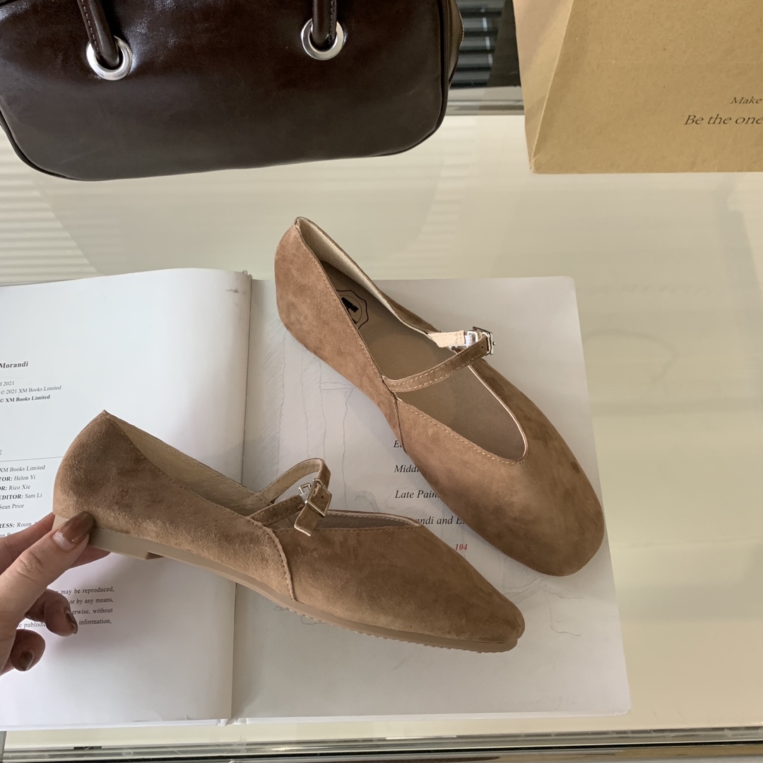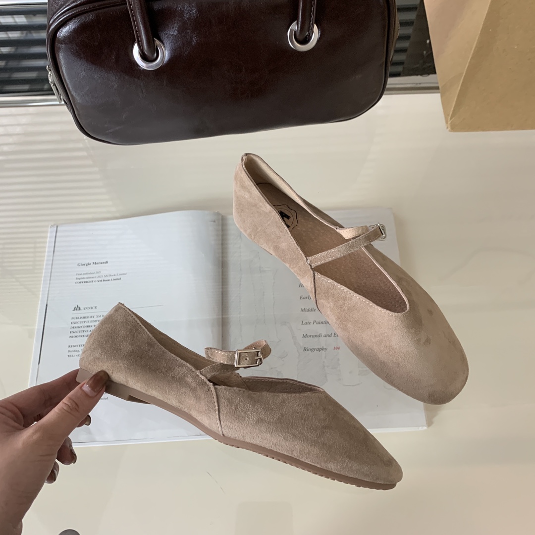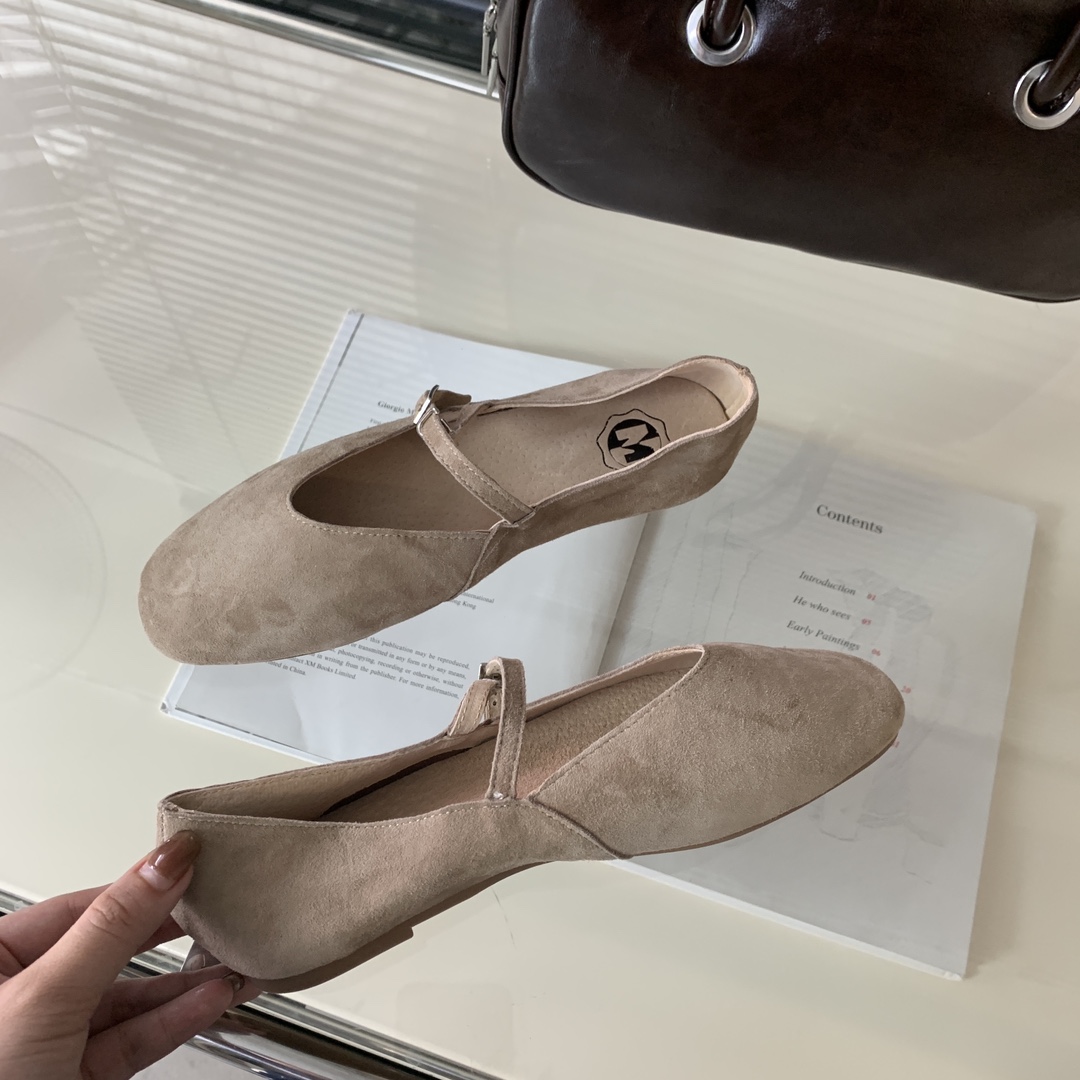 + Free ShippingNew spring-autumn style vintage soft-soled ballet women’s shoes made of full-grain nubuck leather, perfect for pairing with skirts.