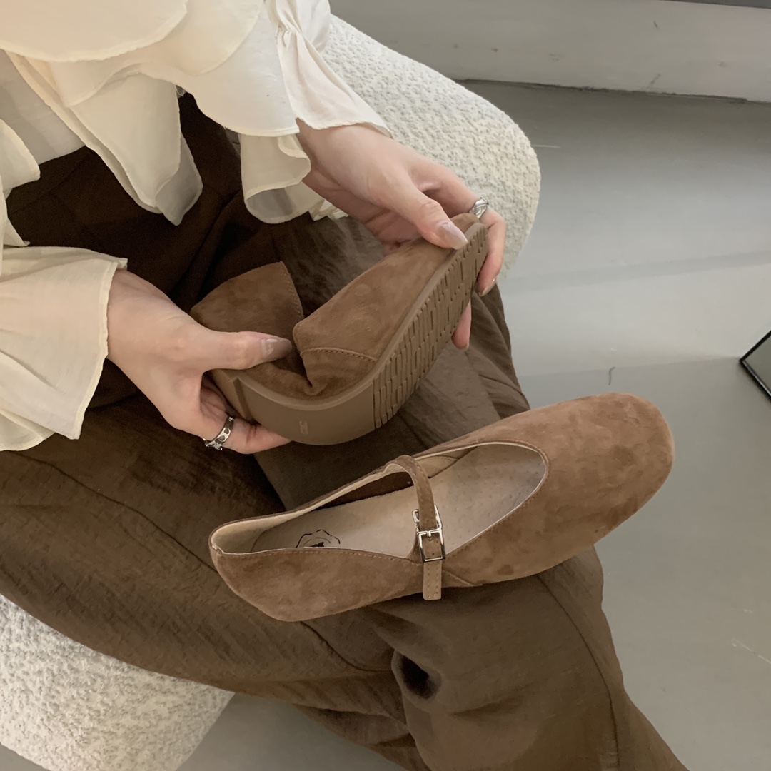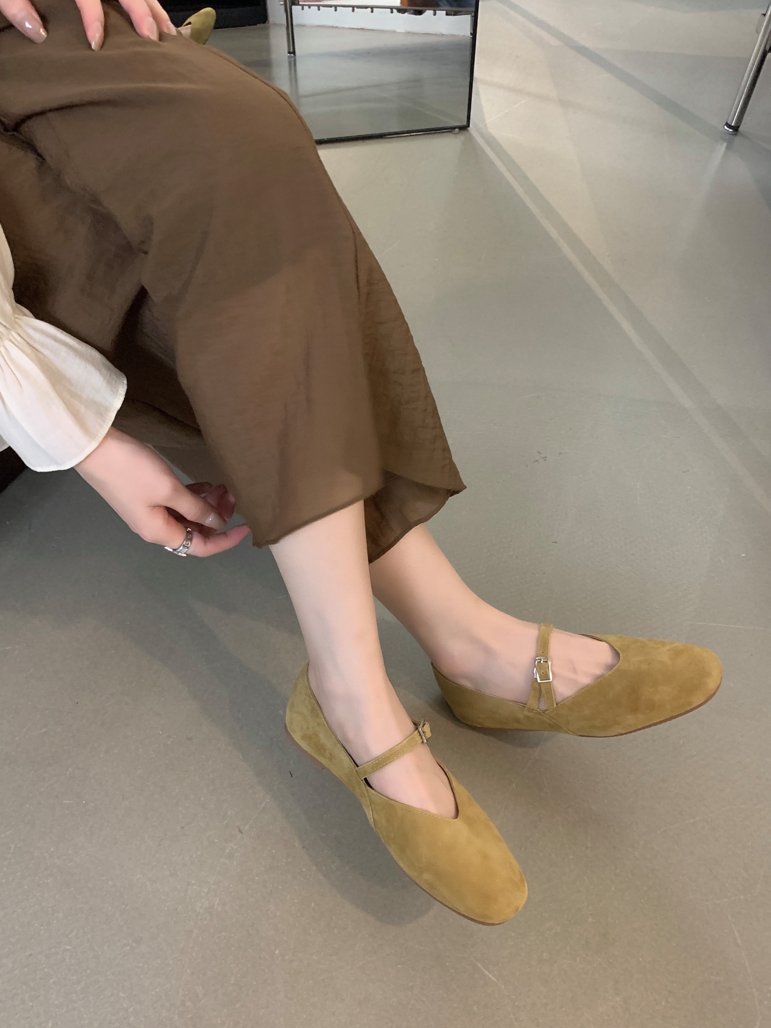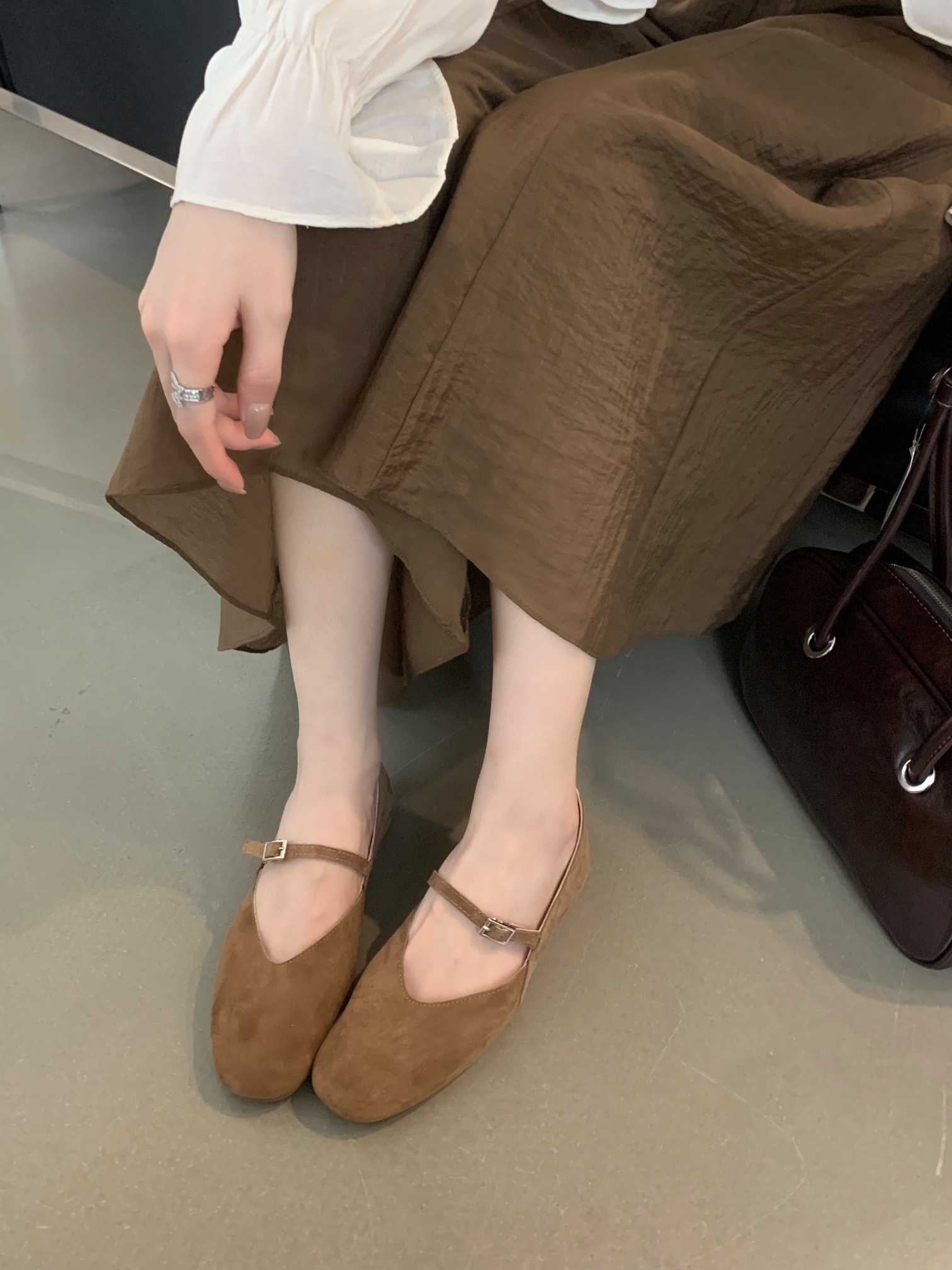 + Free ShippingNew spring-autumn style vintage soft-soled ballet women’s shoes made of full-grain nubuck leather, perfect for pairing with skirts.