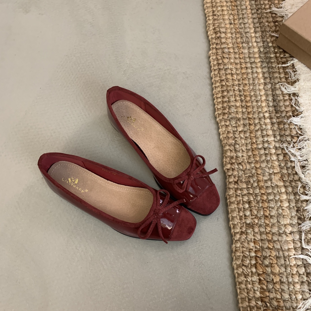 French-style Chanel-inspired bow-tie women’s single shoes with built-in heels 520-8
