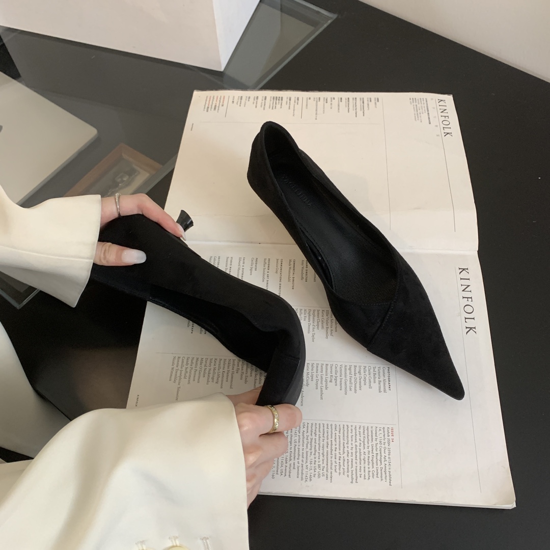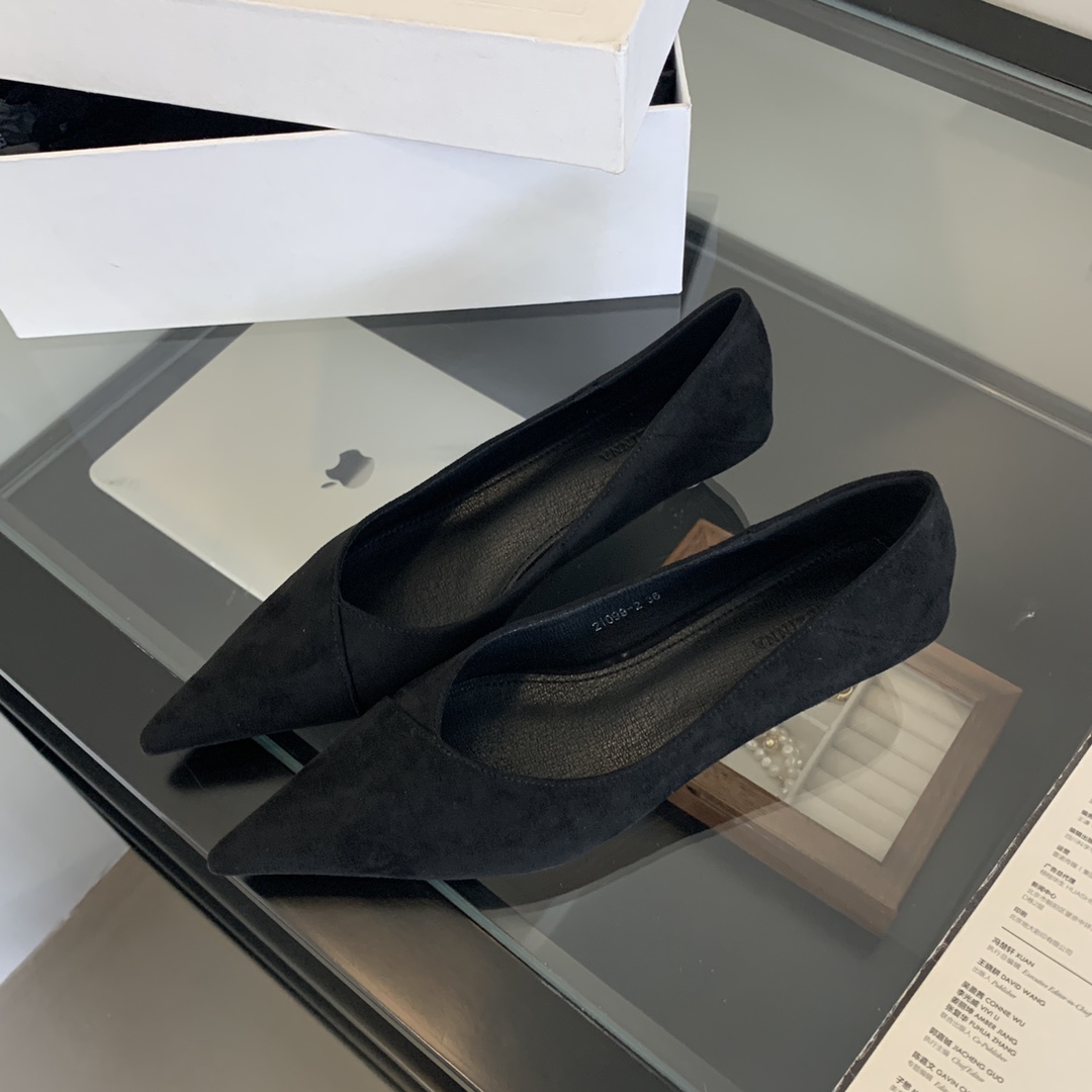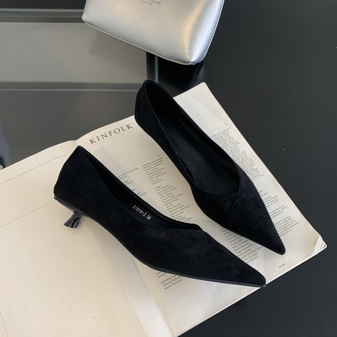 Thin-heeled shoes $21.00Rated 0 out of 5French-style pointed-toe suede women’s single shoes with a 2.5cm thin heel 21099-12