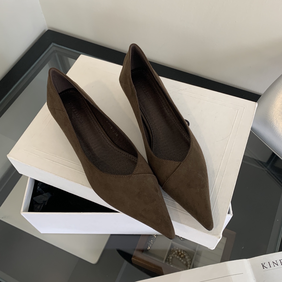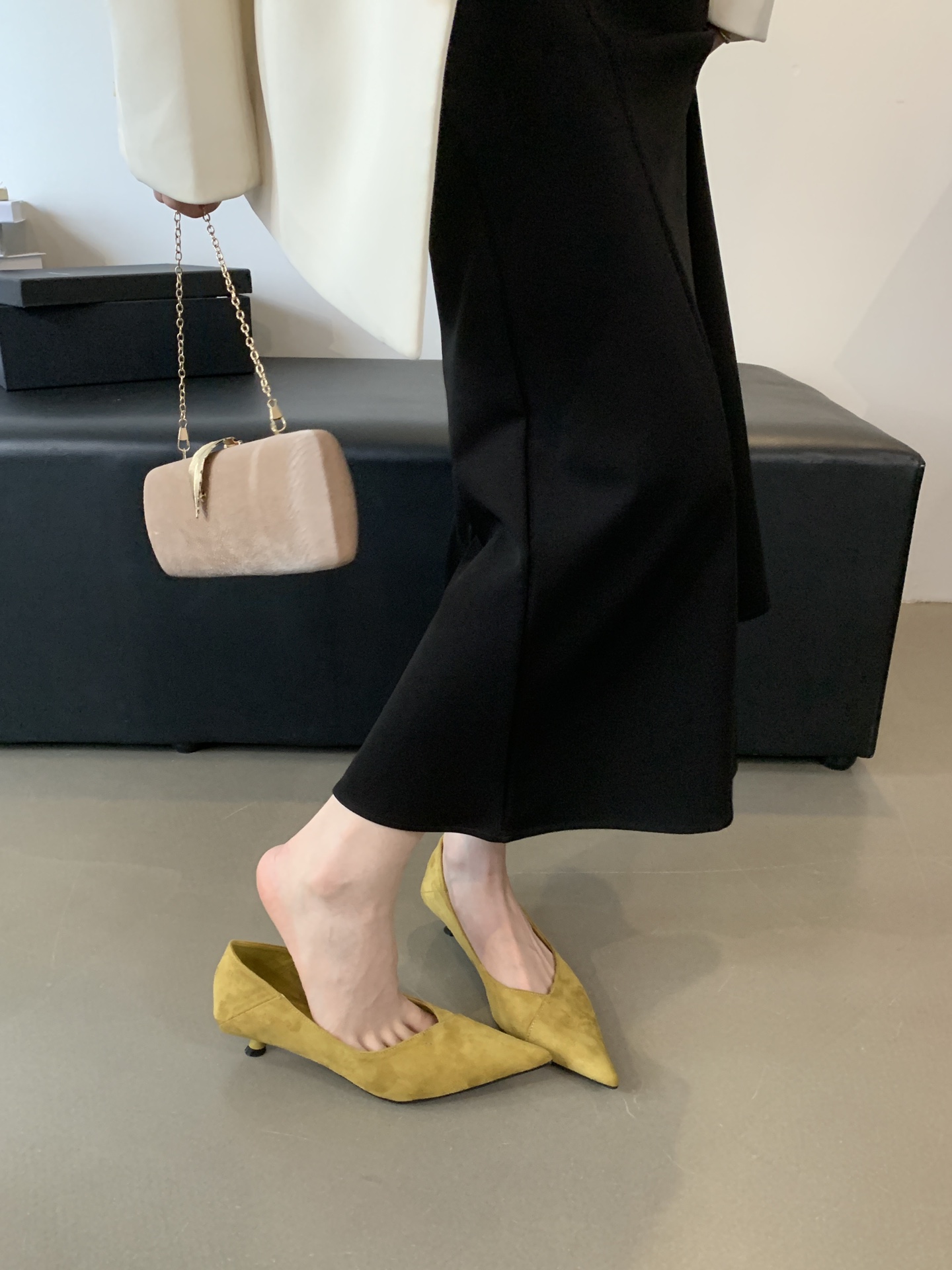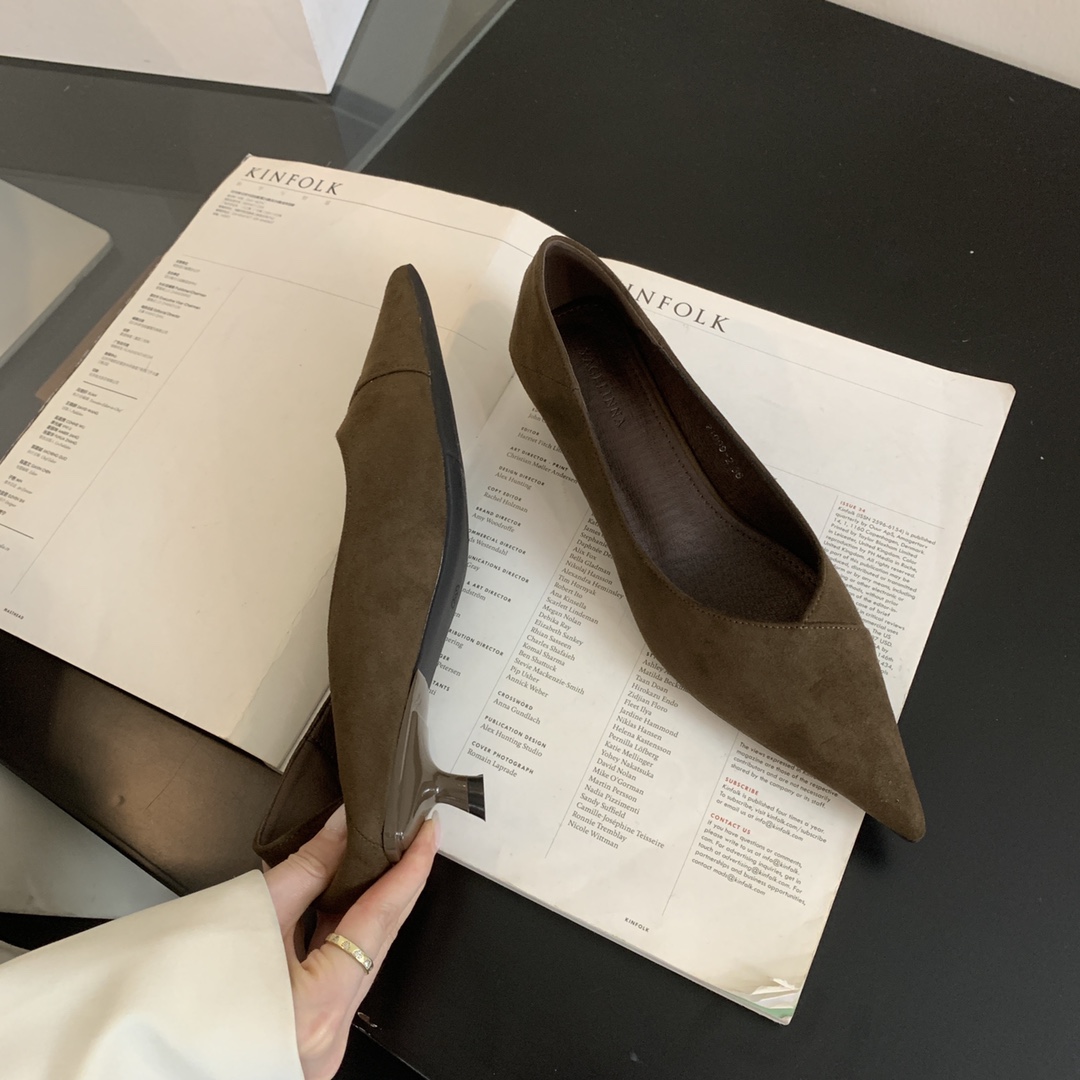 Thin-heeled shoes $21.00Rated 0 out of 5French-style pointed-toe suede women’s single shoes with a 2.5cm thin heel 21099-12