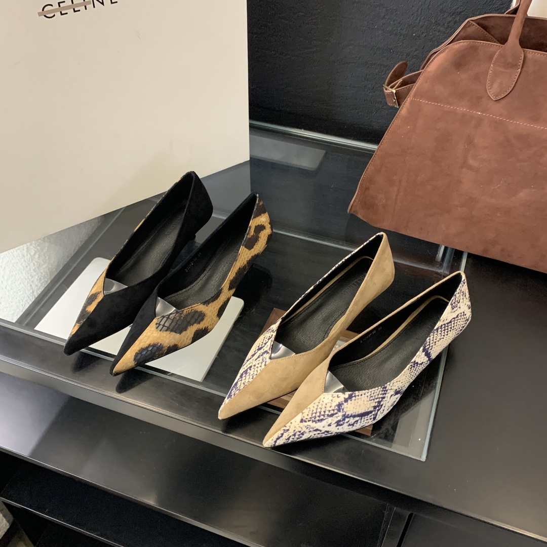 French-style pointed-toe elegant women’s single shoes with a 2cm thin heel, featuring leopard or snake print 21099-10