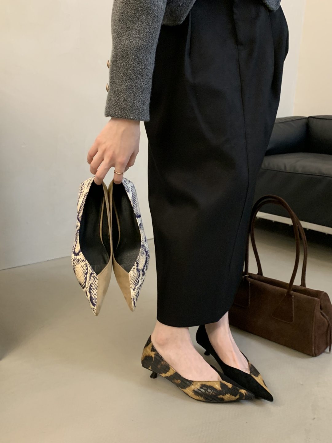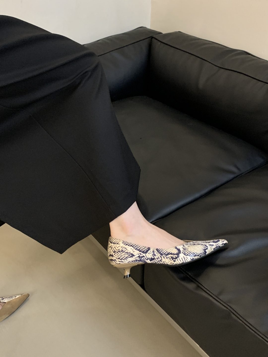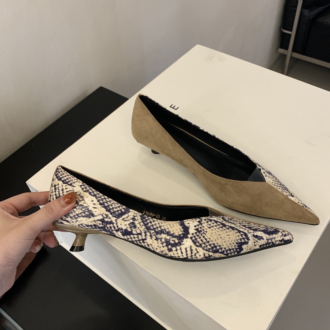 French-style pointed-toe elegant women’s single shoes with a 2cm thin heel, featuring leopard or snake print 21099-10