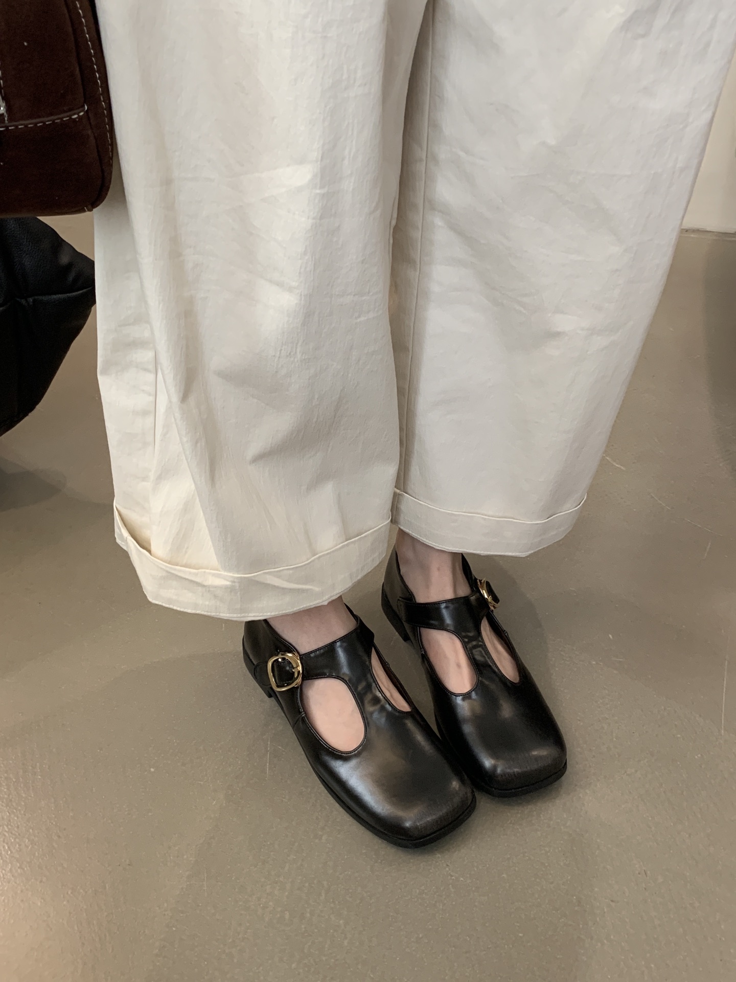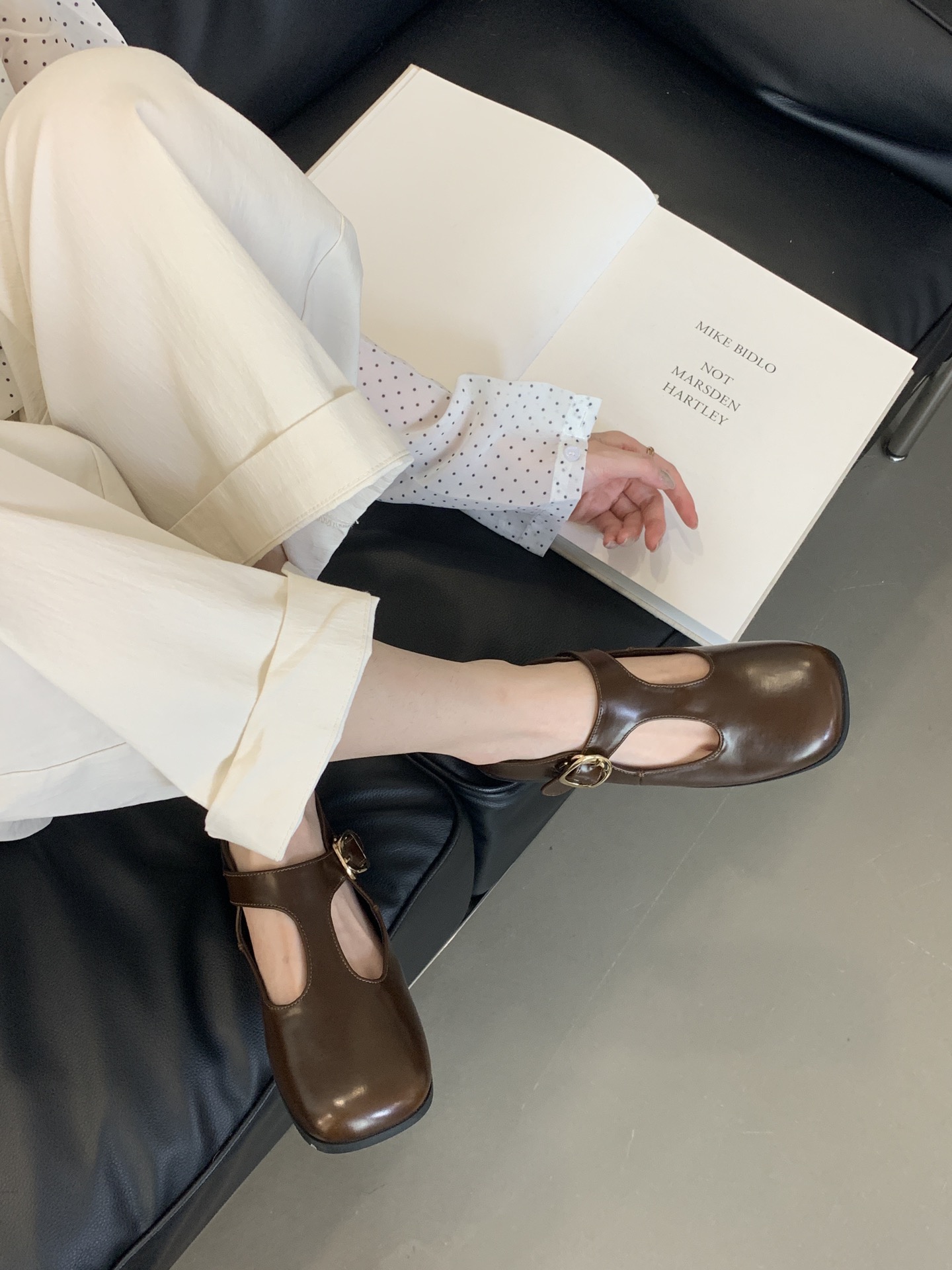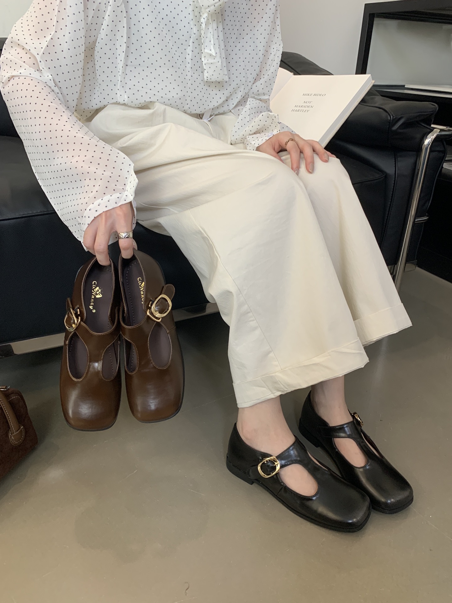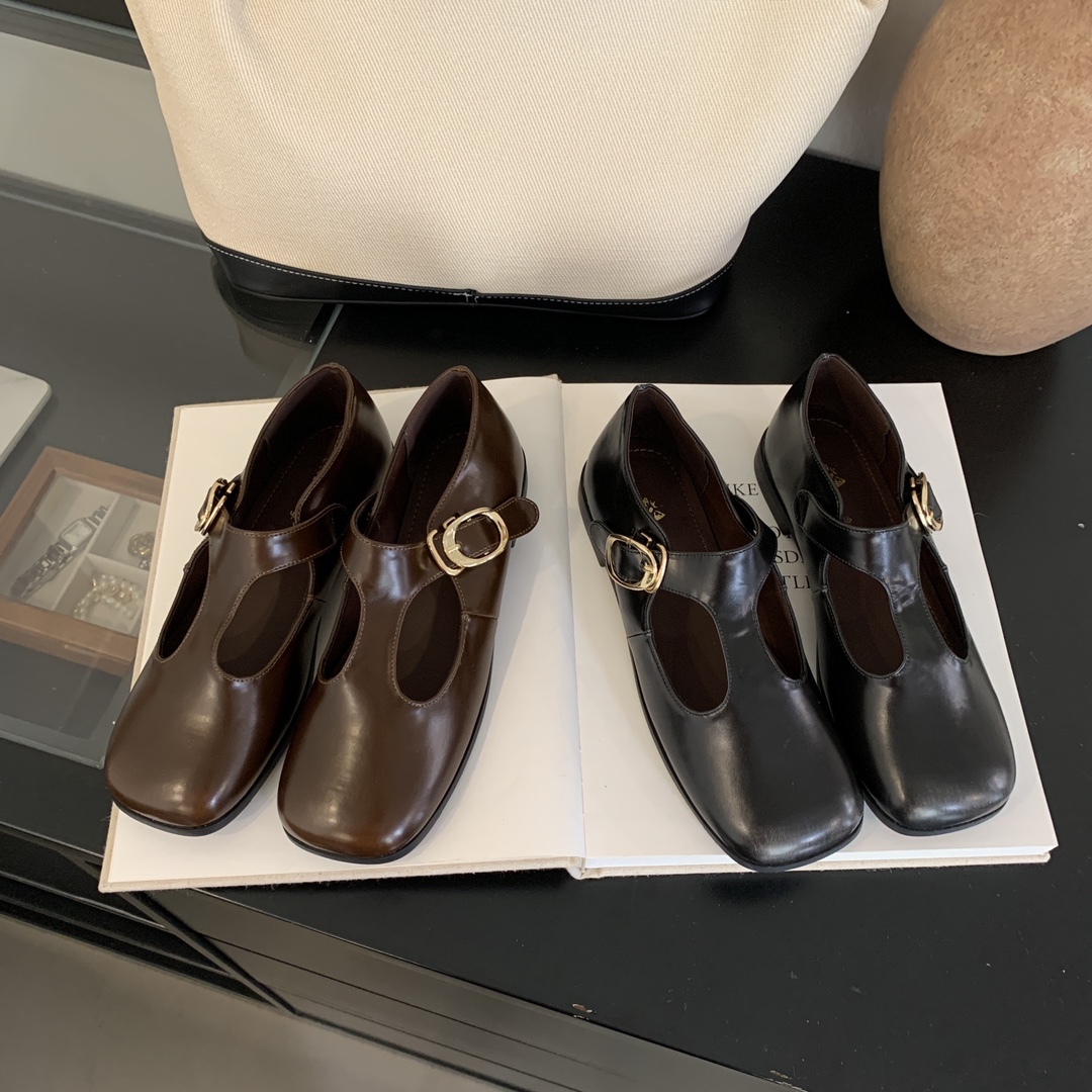 French-style women’s low-heeled T-bar buckle Mary Jane flats 799-1