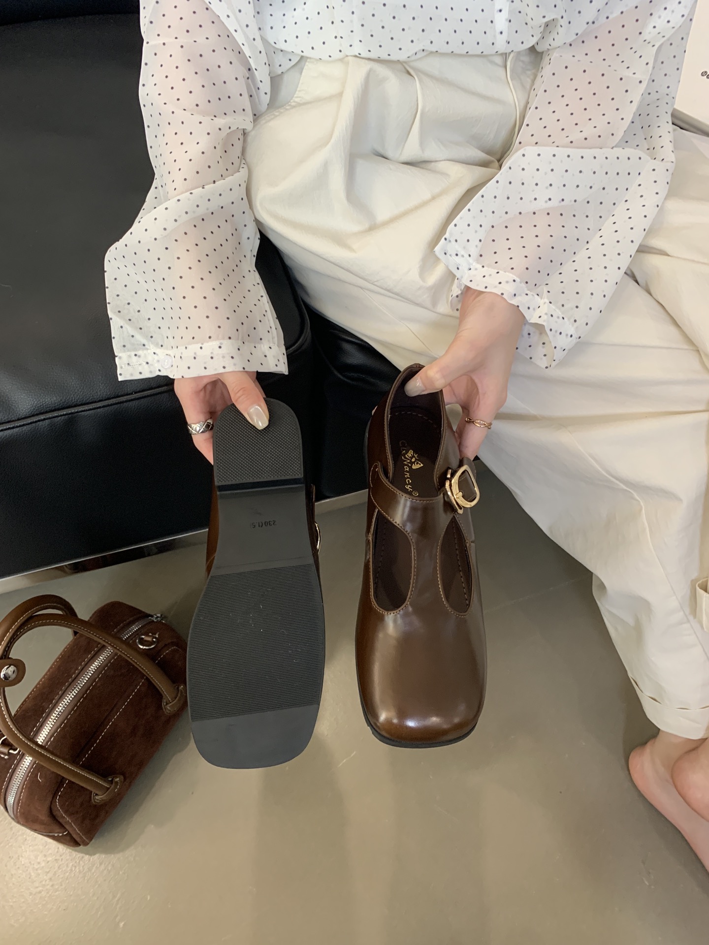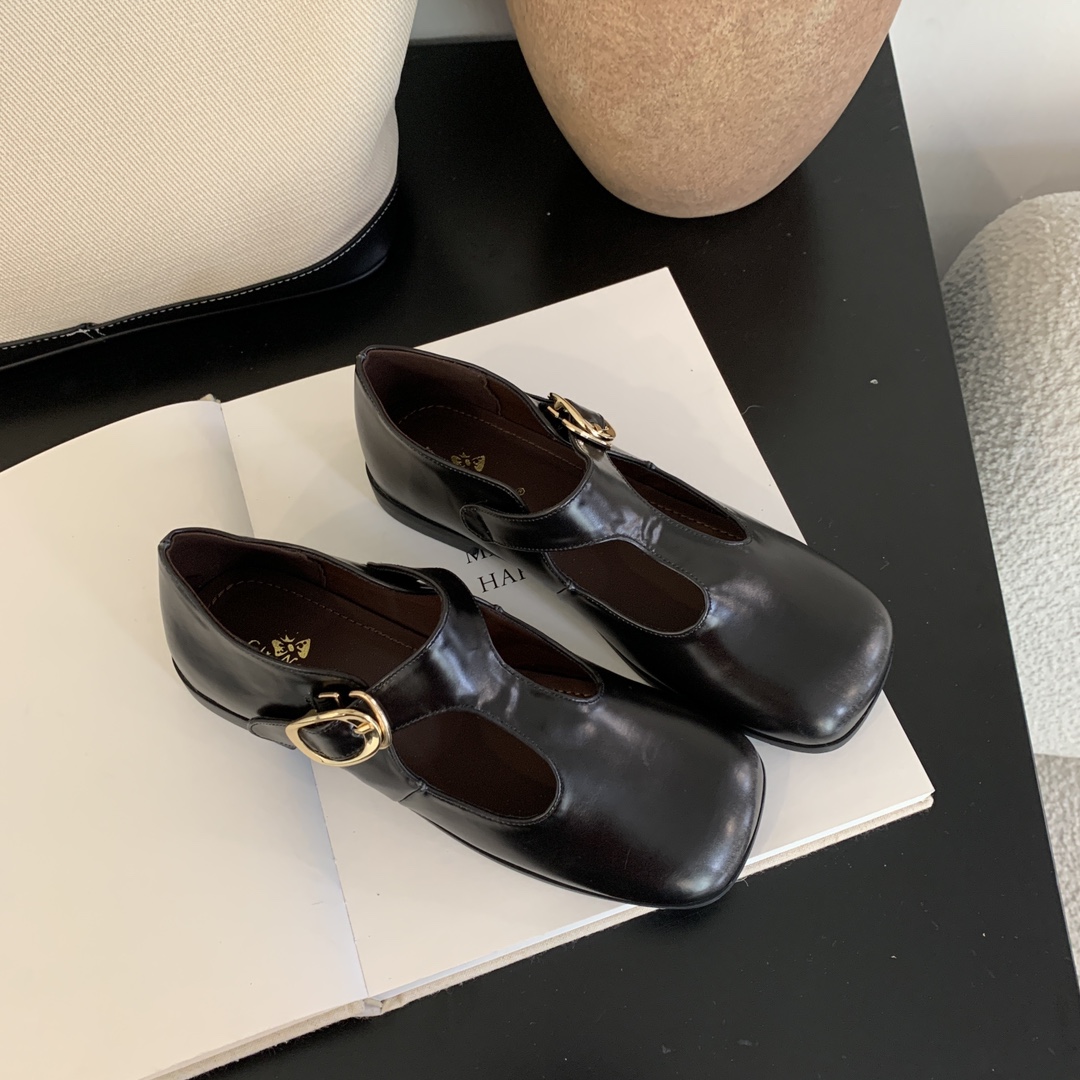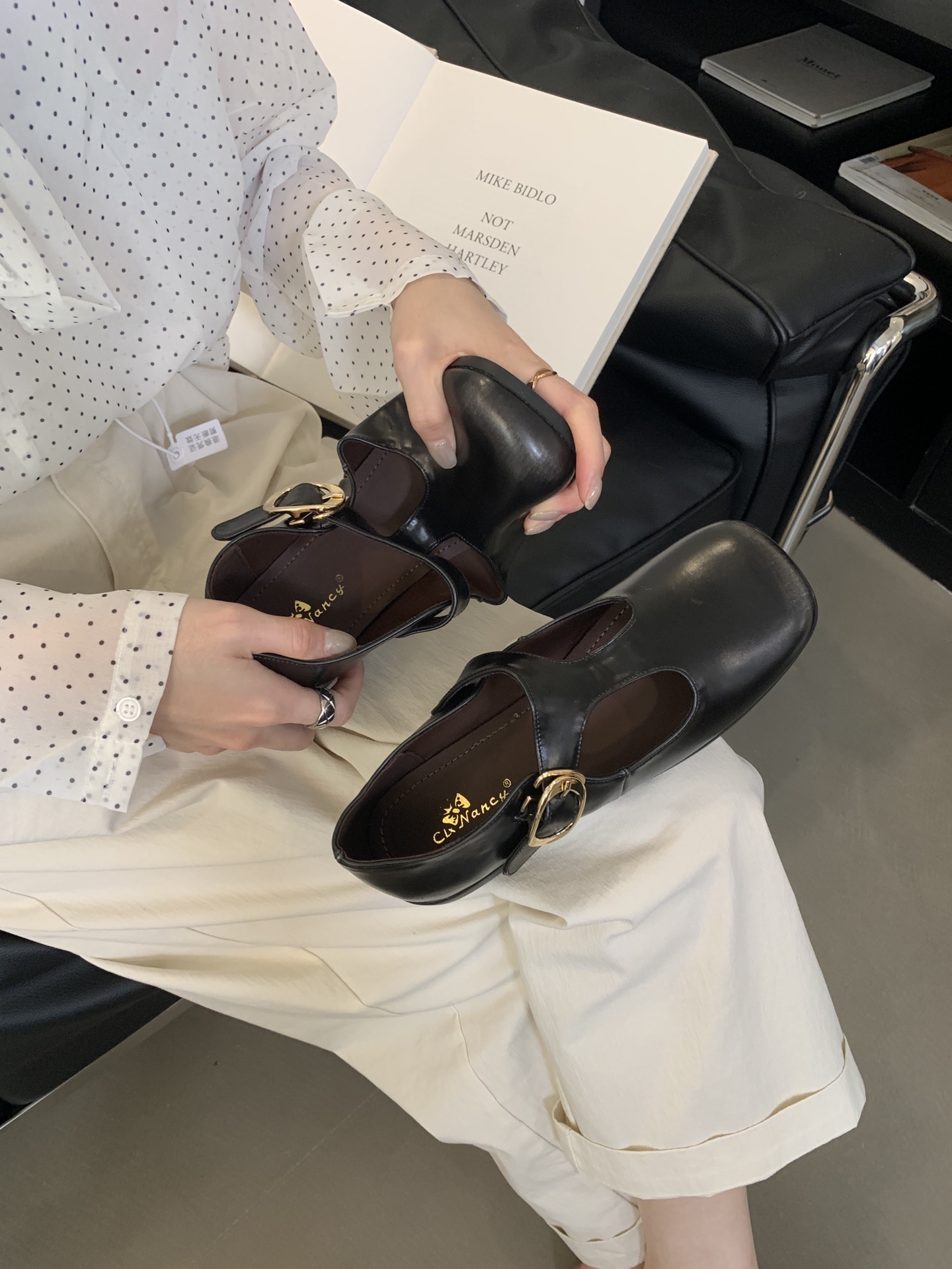 French-style women’s low-heeled T-bar buckle Mary Jane flats 799-1