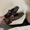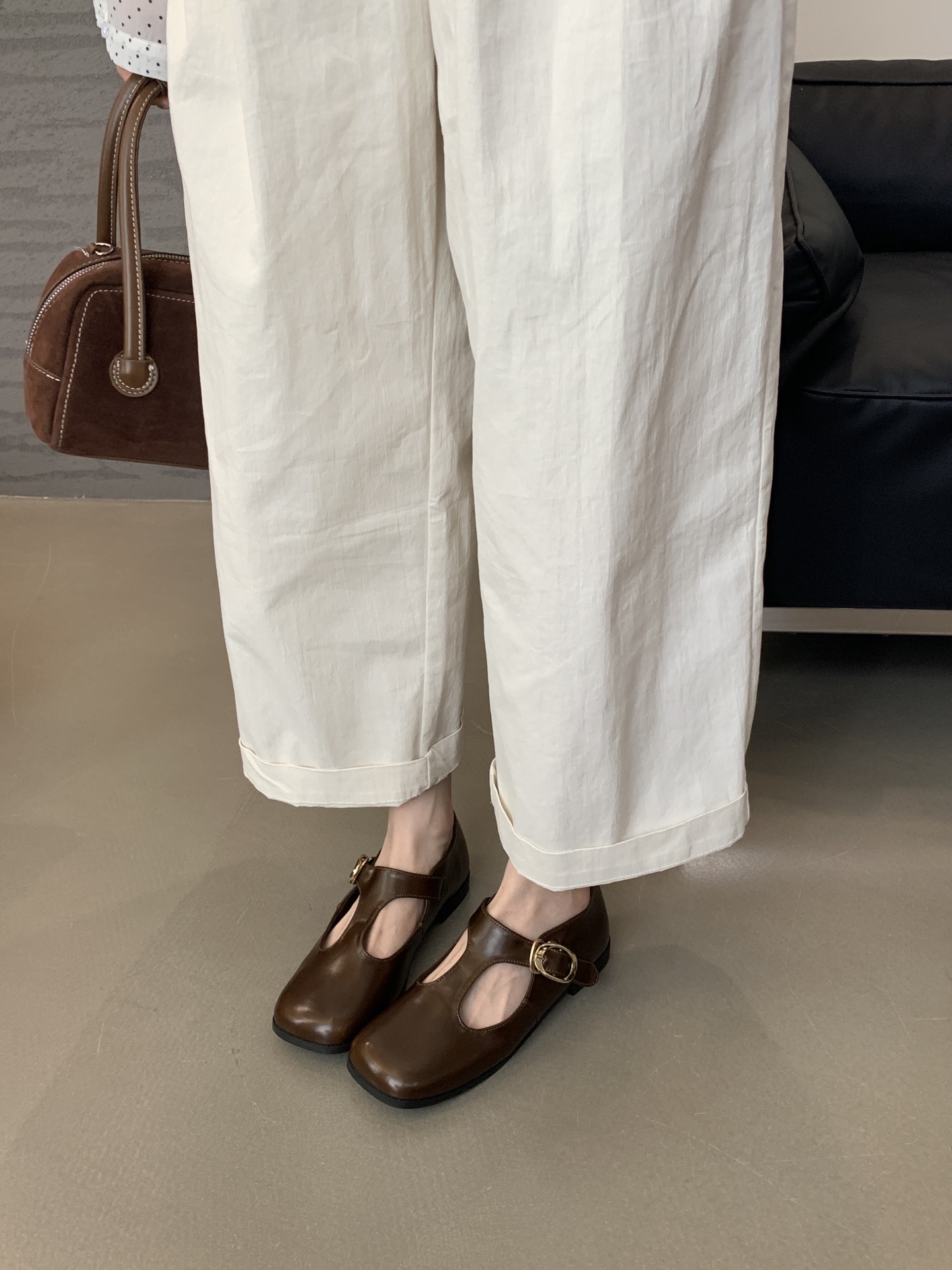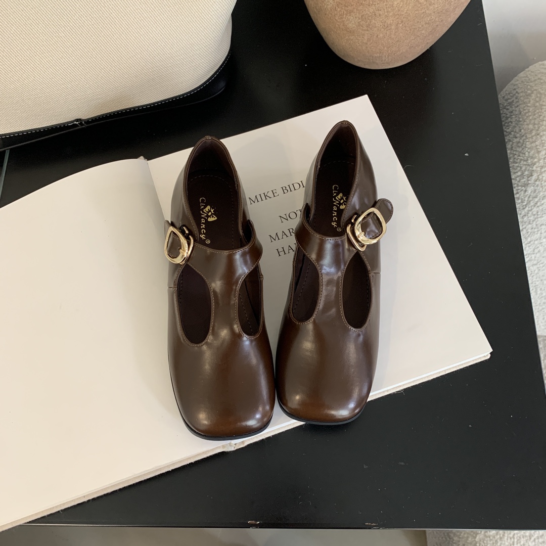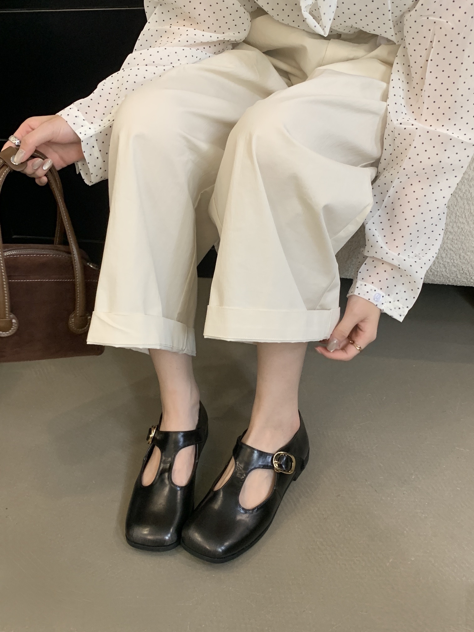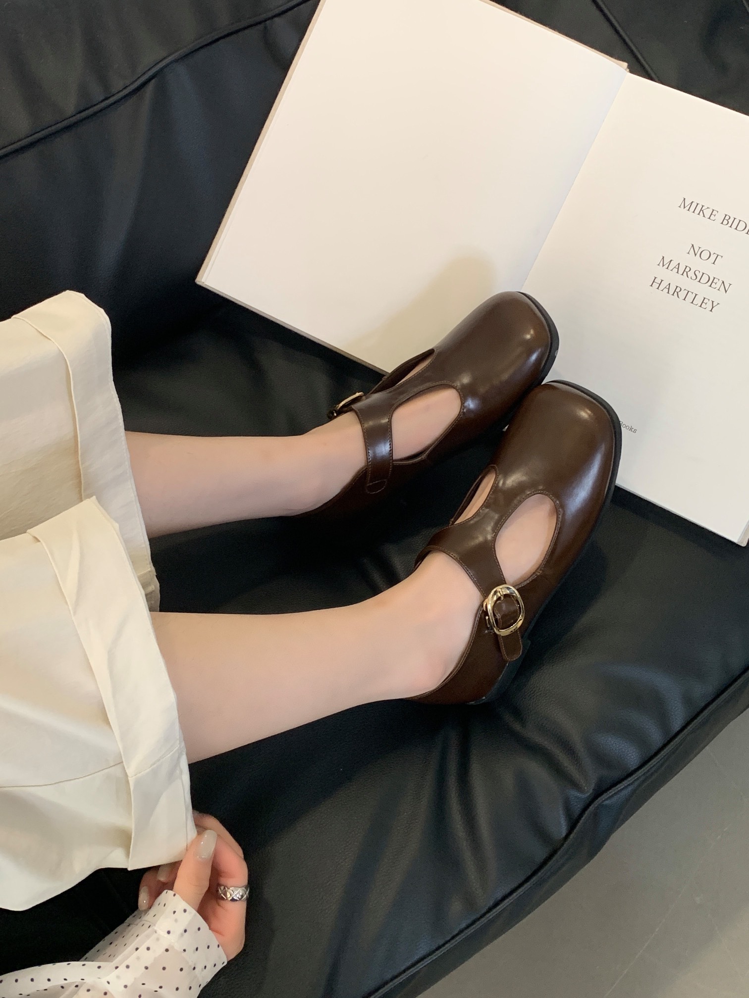 French-style women’s low-heeled T-bar buckle Mary Jane flats 799-1
