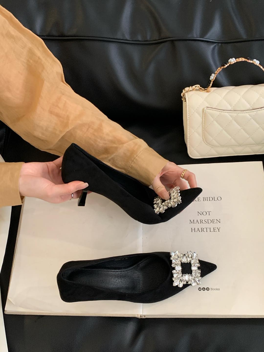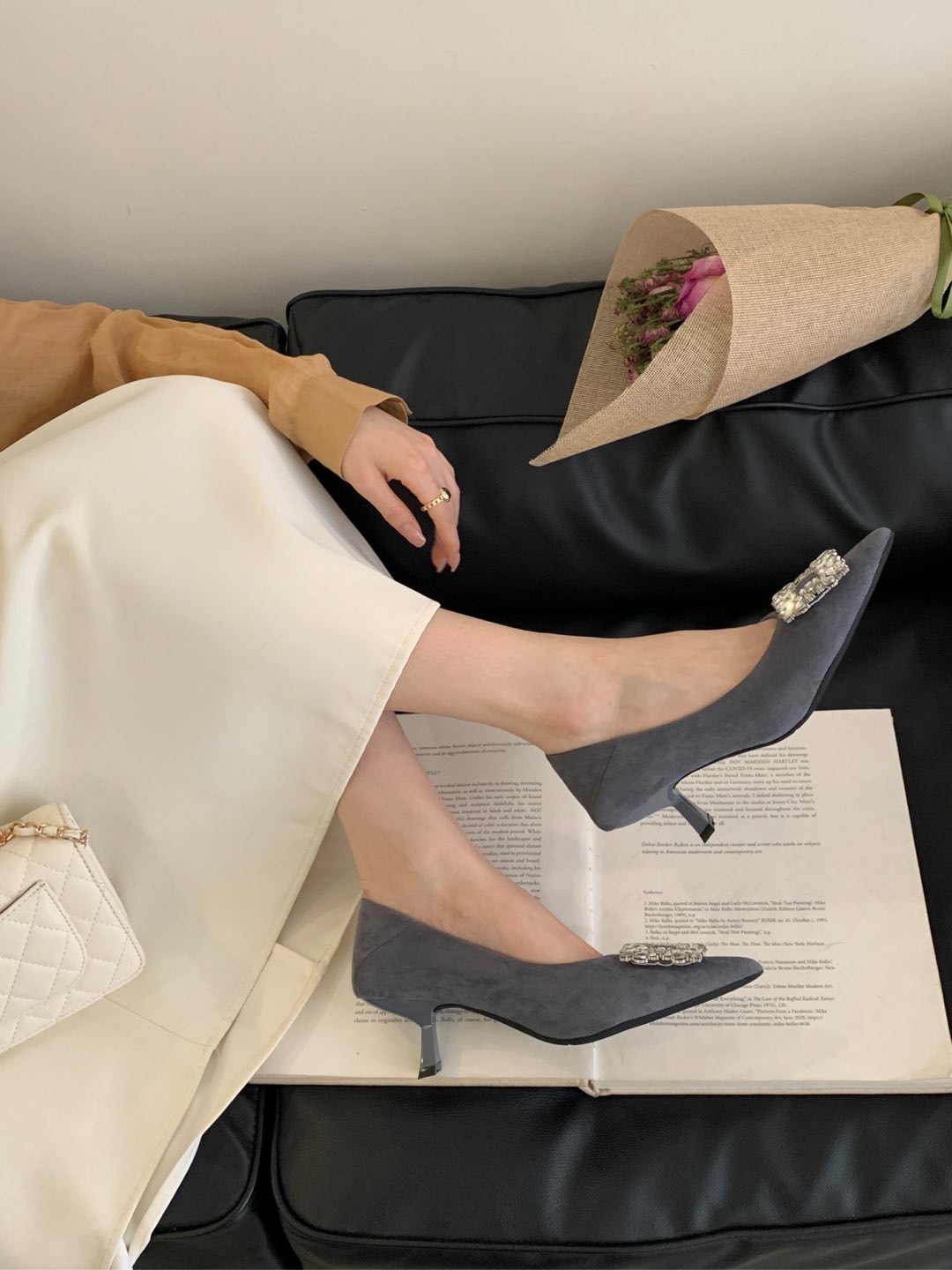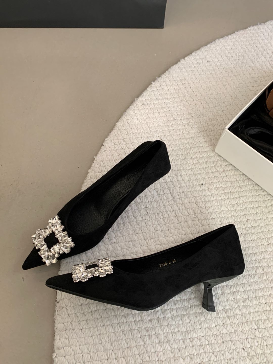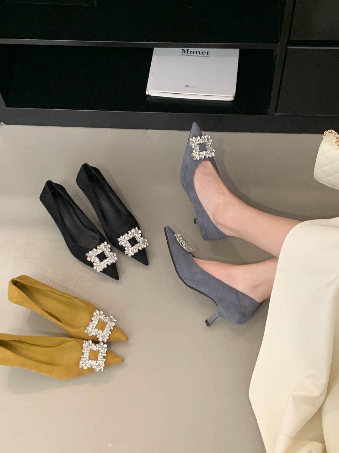 New-style versatile shoes with rhinestones, a sense of luxury, suede uppers and thin low heels.