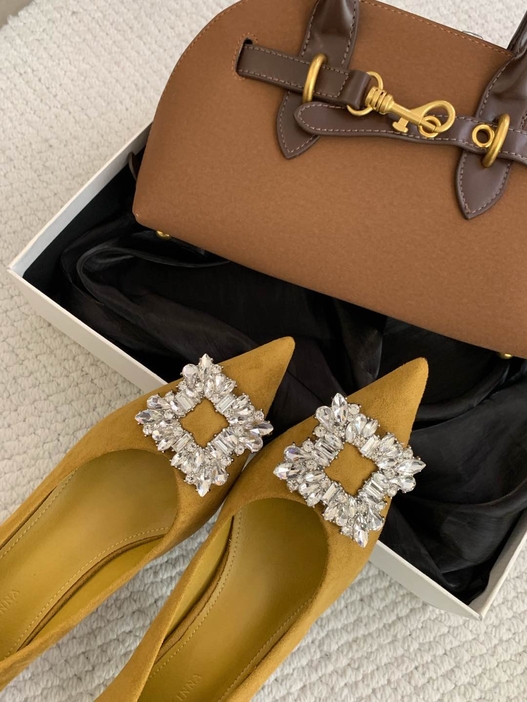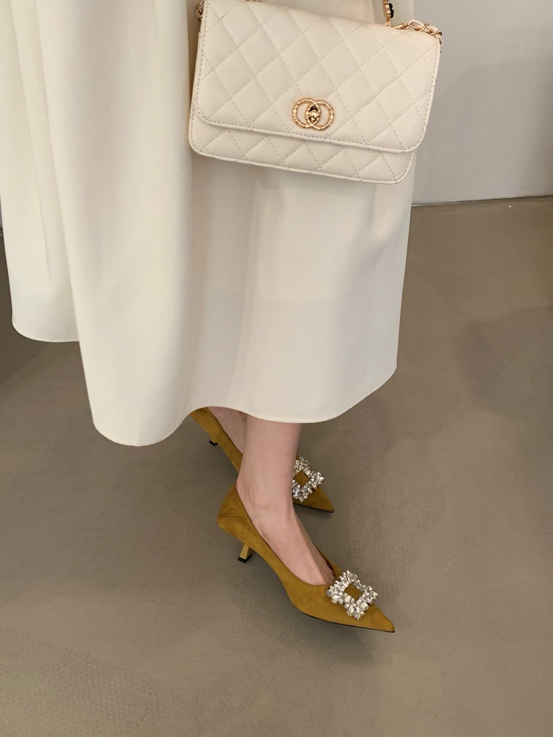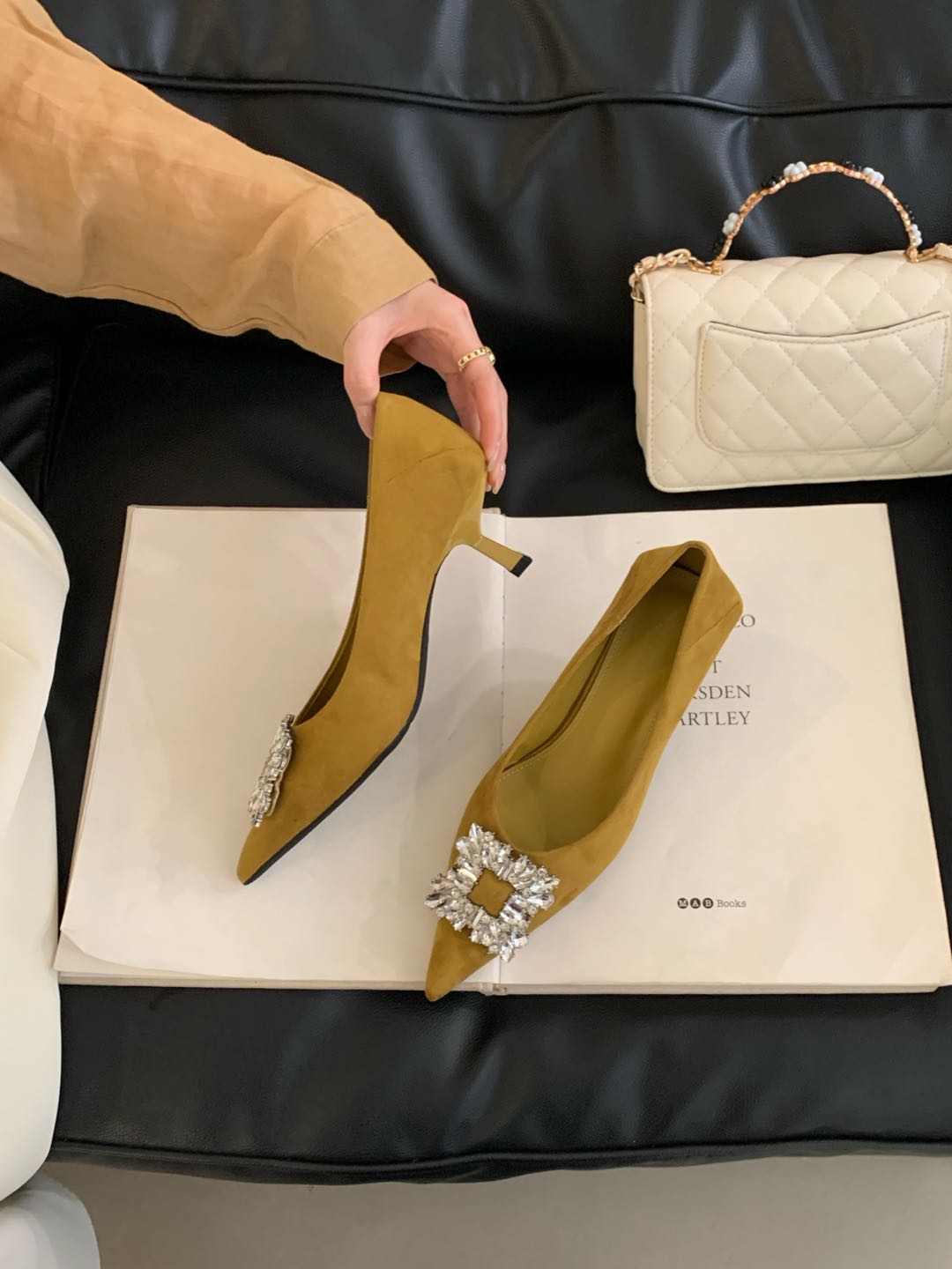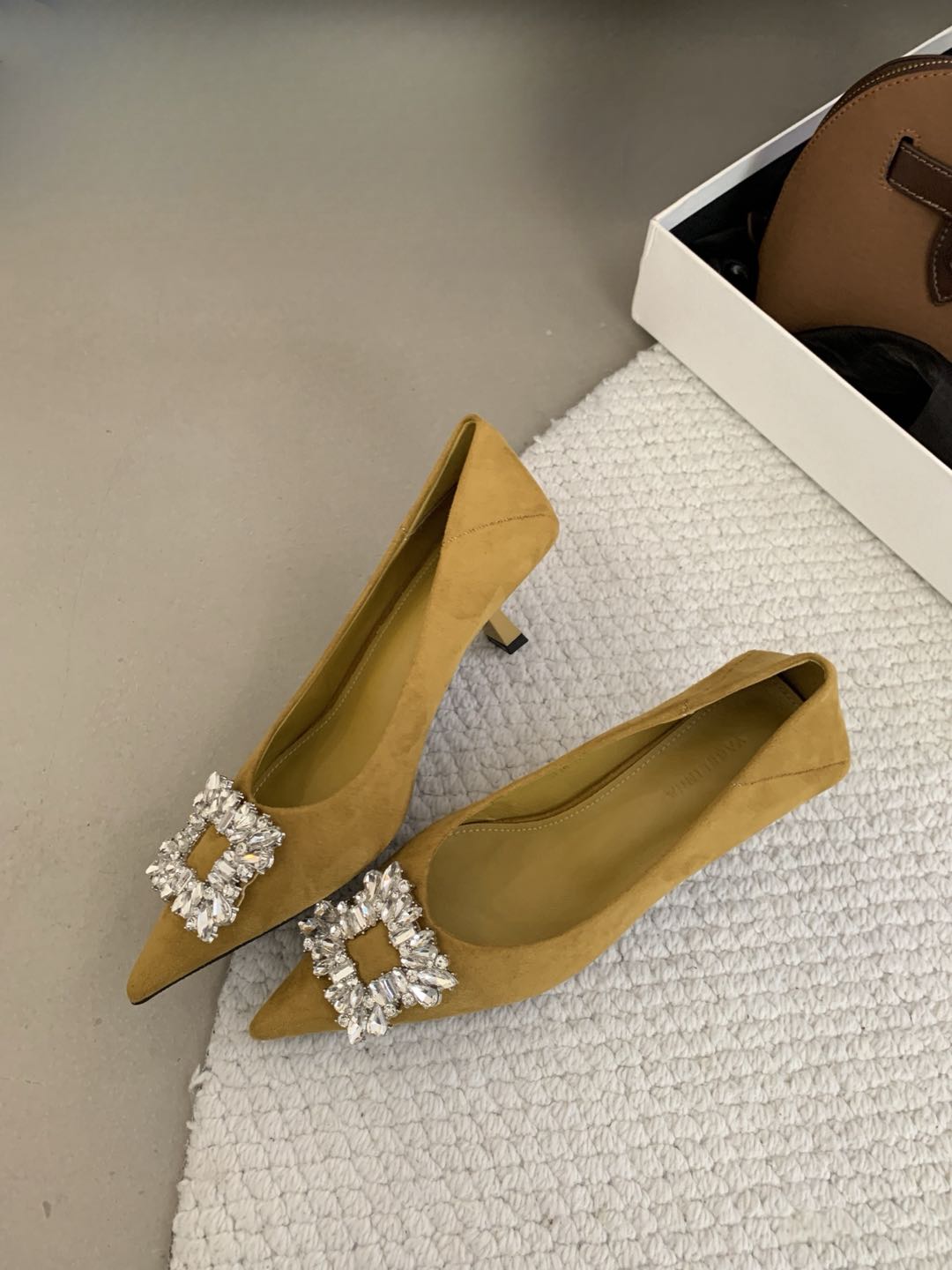 New-style versatile shoes with rhinestones, a sense of luxury, suede uppers and thin low heels.