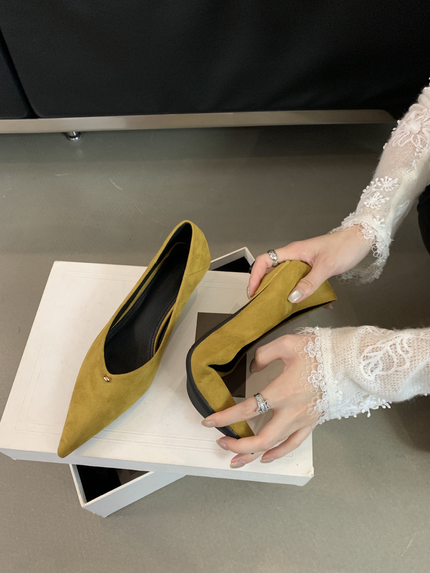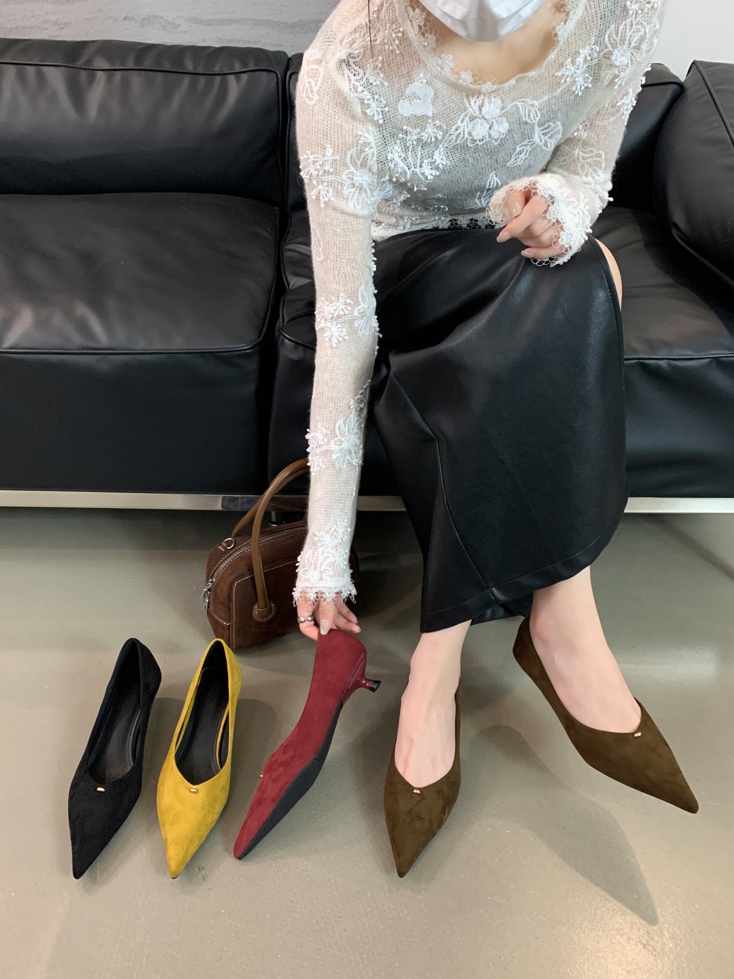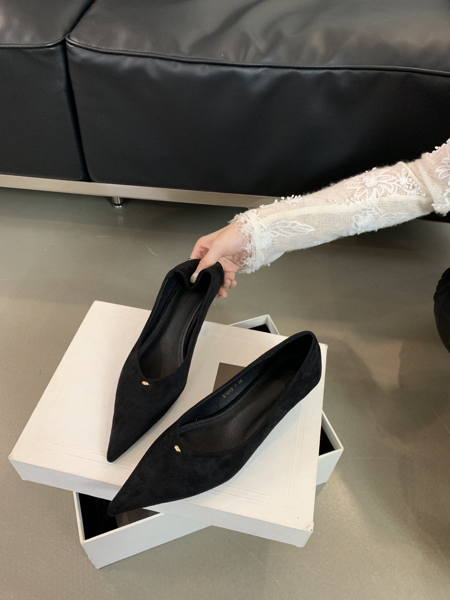French-style pointed-toe suede women’s single shoes with a 2.5cm thin heel 21099-12