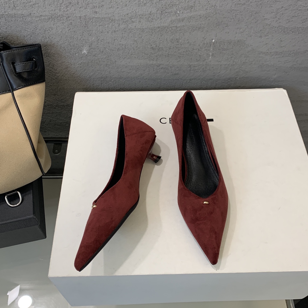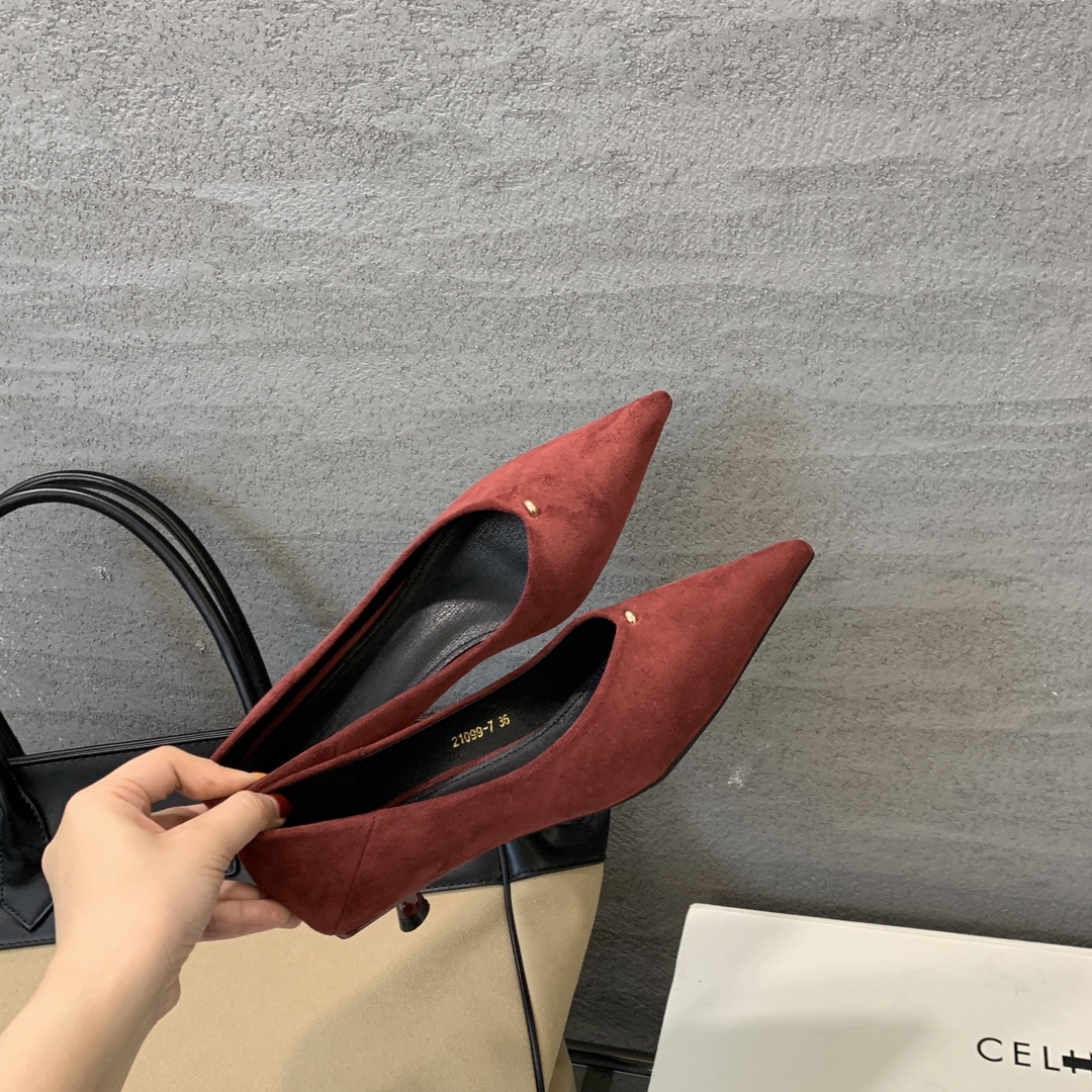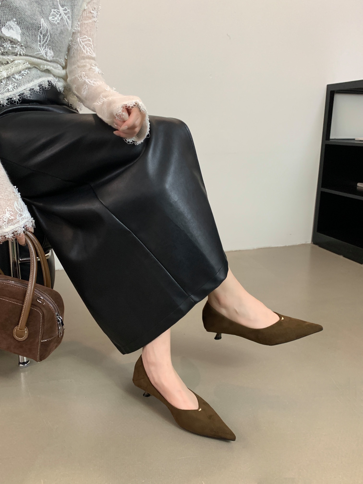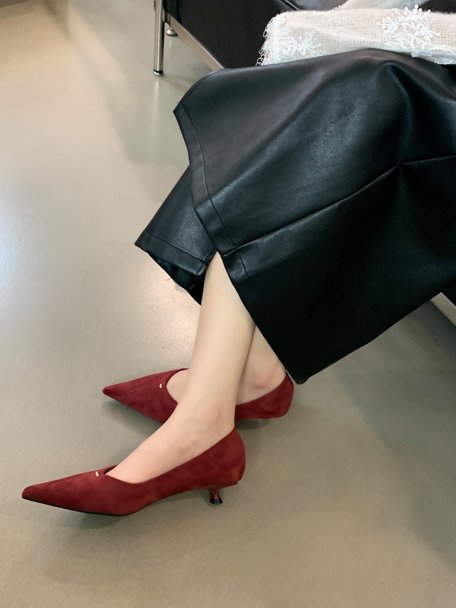 French-style pointed-toe suede women’s single shoes with a 2.5cm thin heel 21099-12