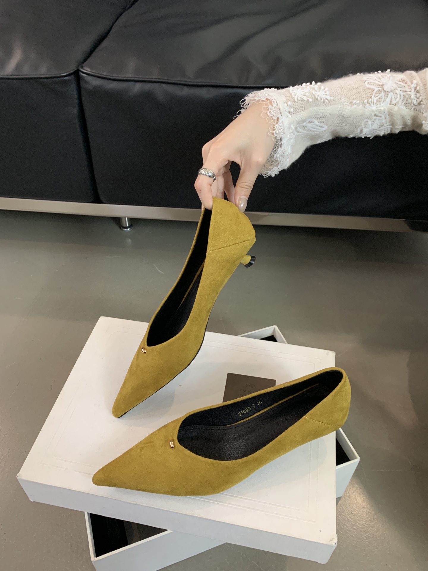 + Free ShippingNew elegant pointed-toe French-style suede kitten-heel soft-soled work shoes.