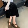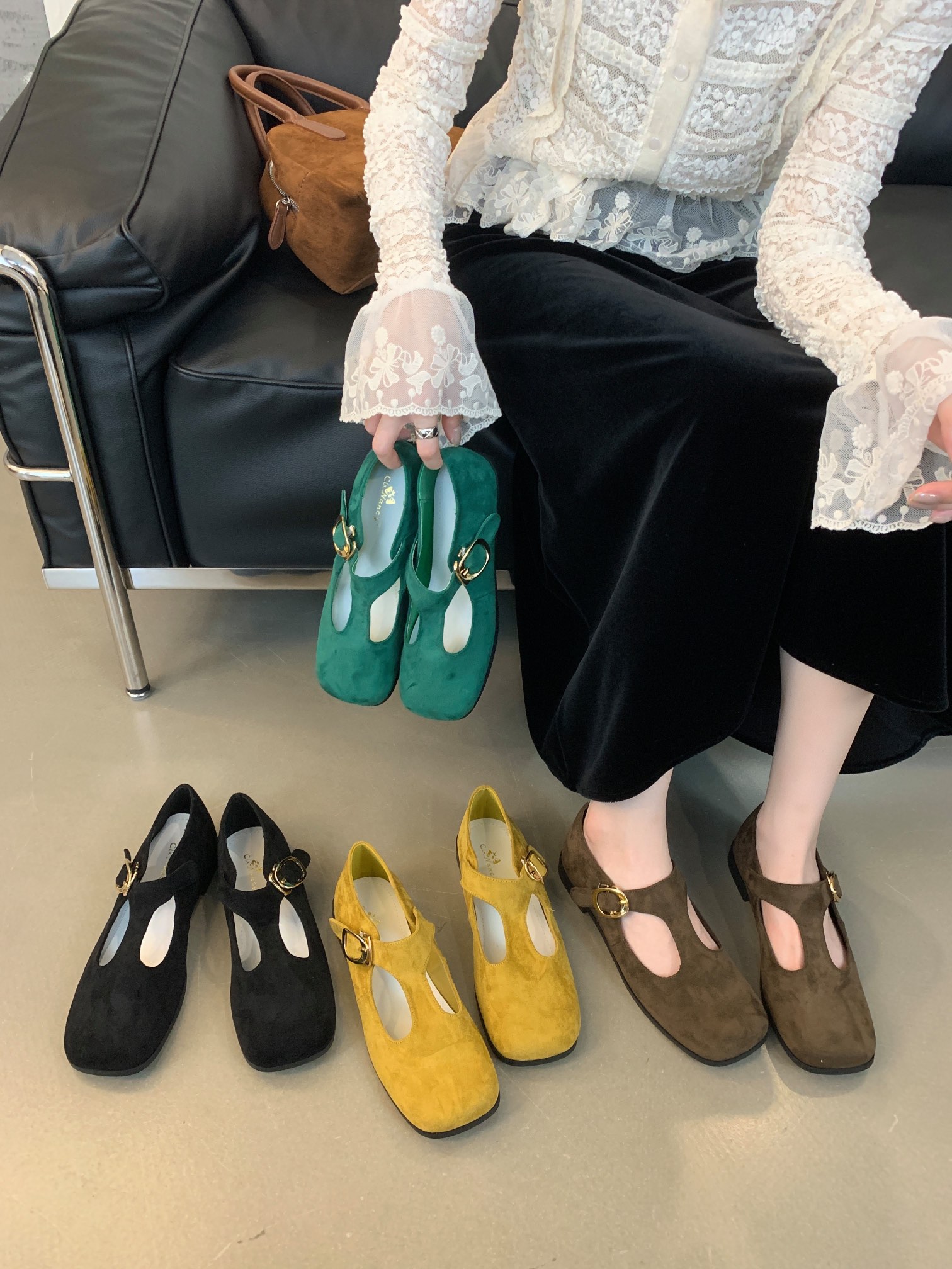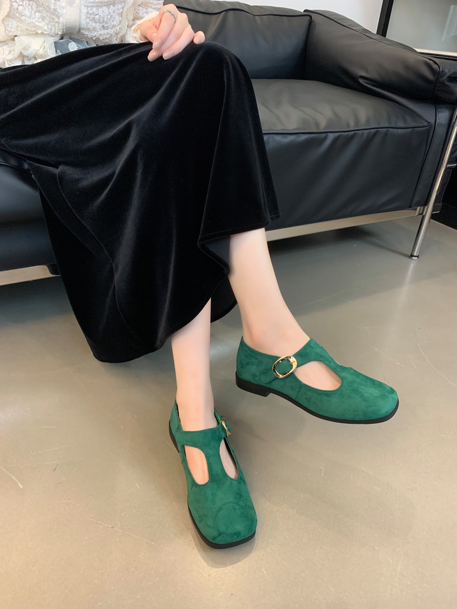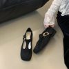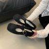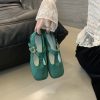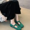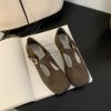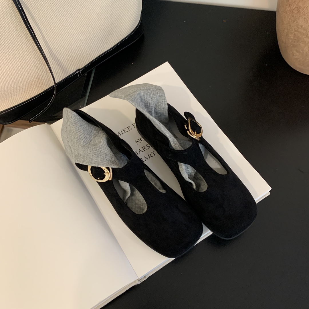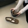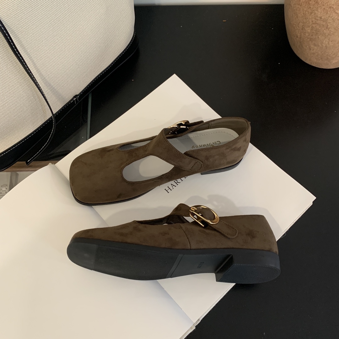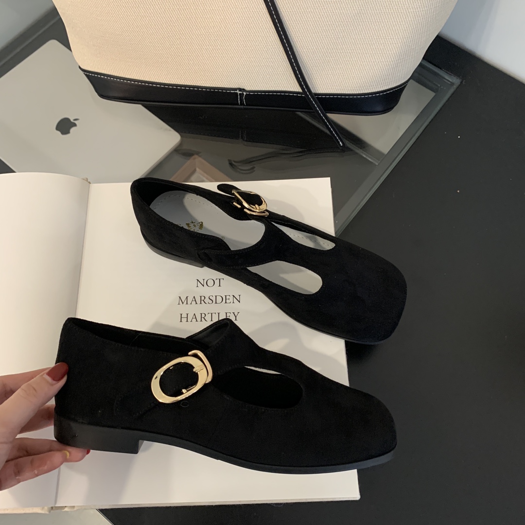 + Free ShippingNew square-toe shallow-cut soft leather T-strap buckle vintage Mary Jane flat shoes.