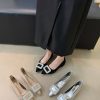 + Free ShippingKorean-style pointed-toe chunky heel new design elegant rhinestone buckle medium heel shallow-cut soft-sole shoes