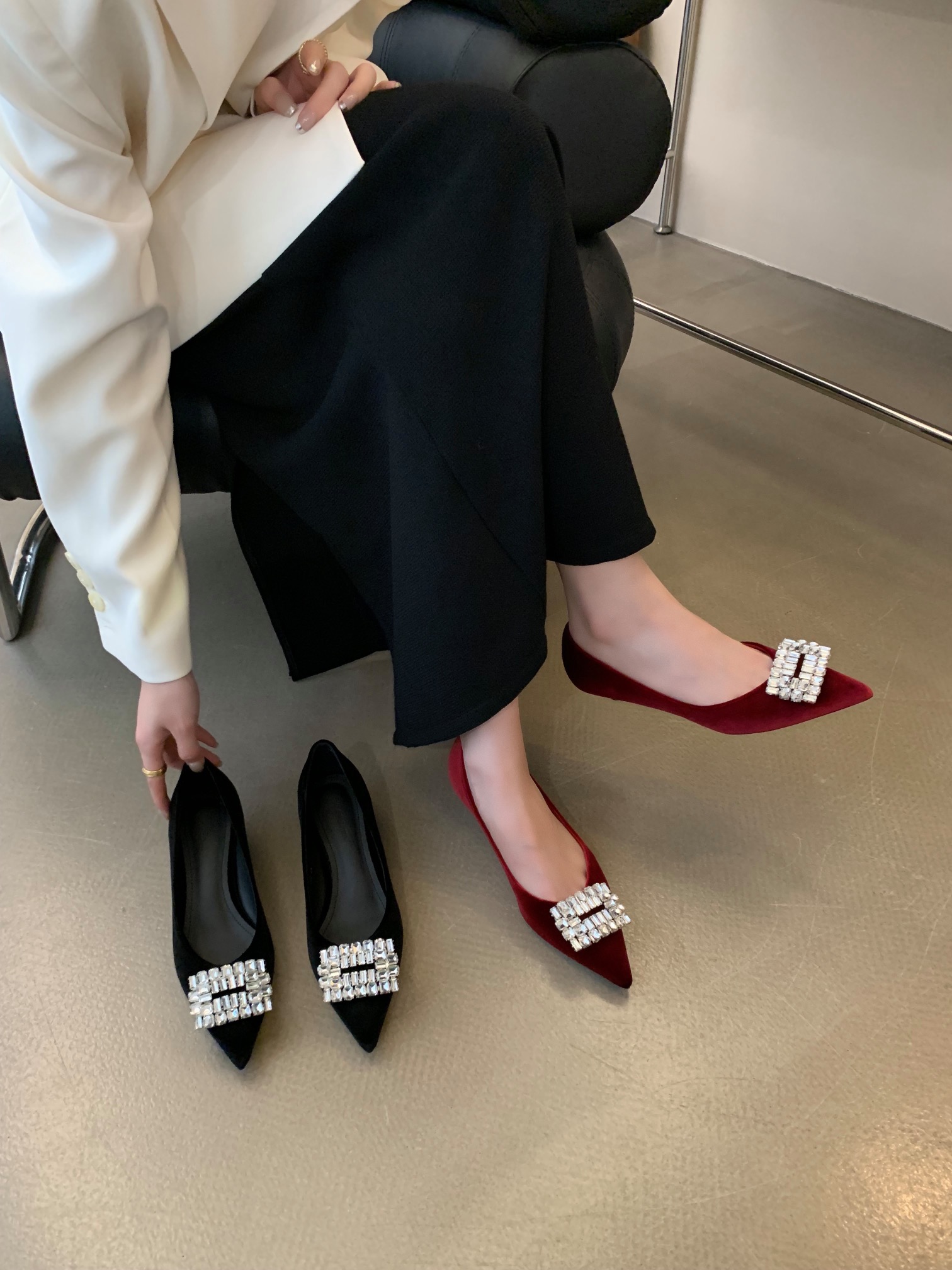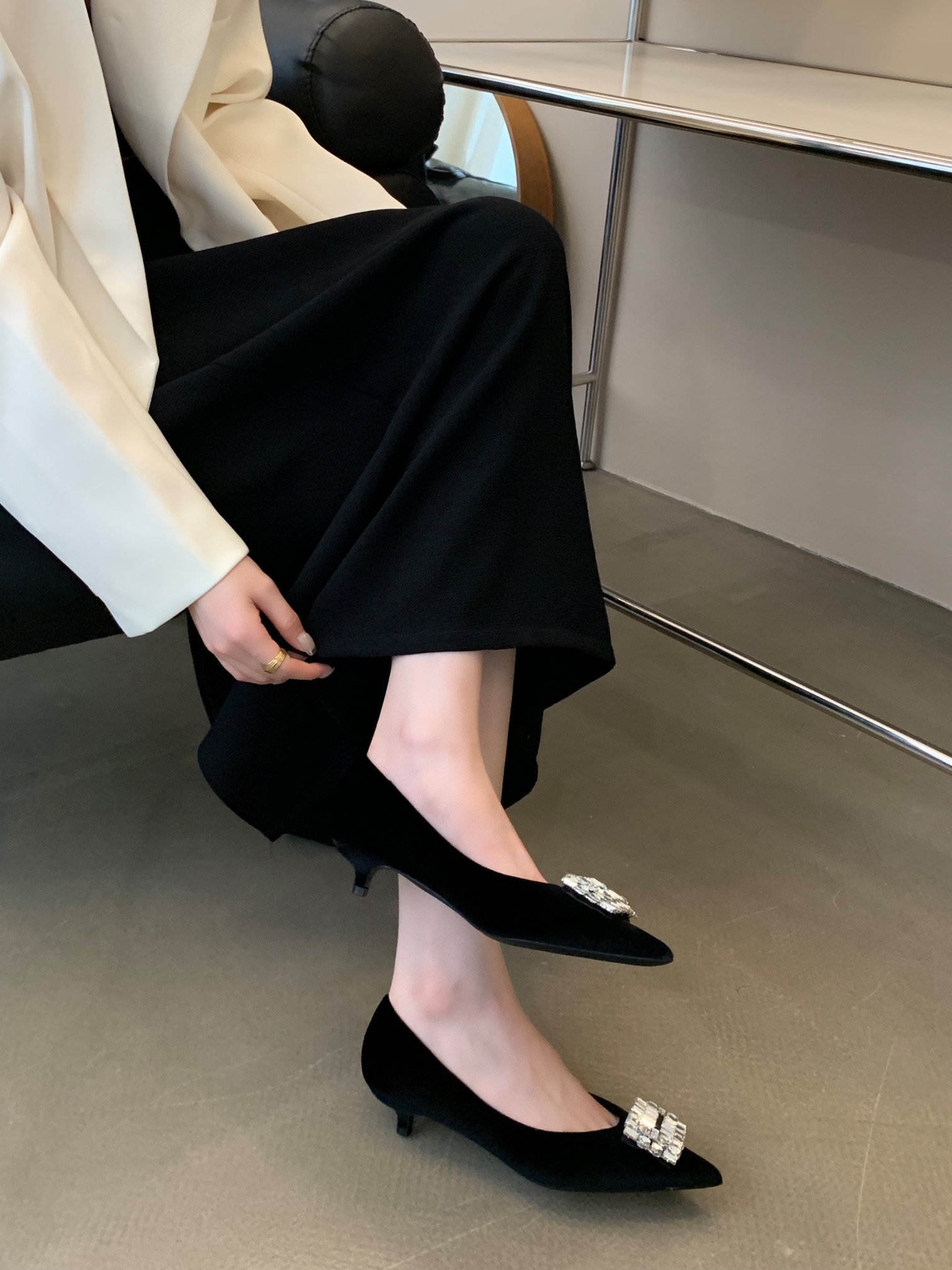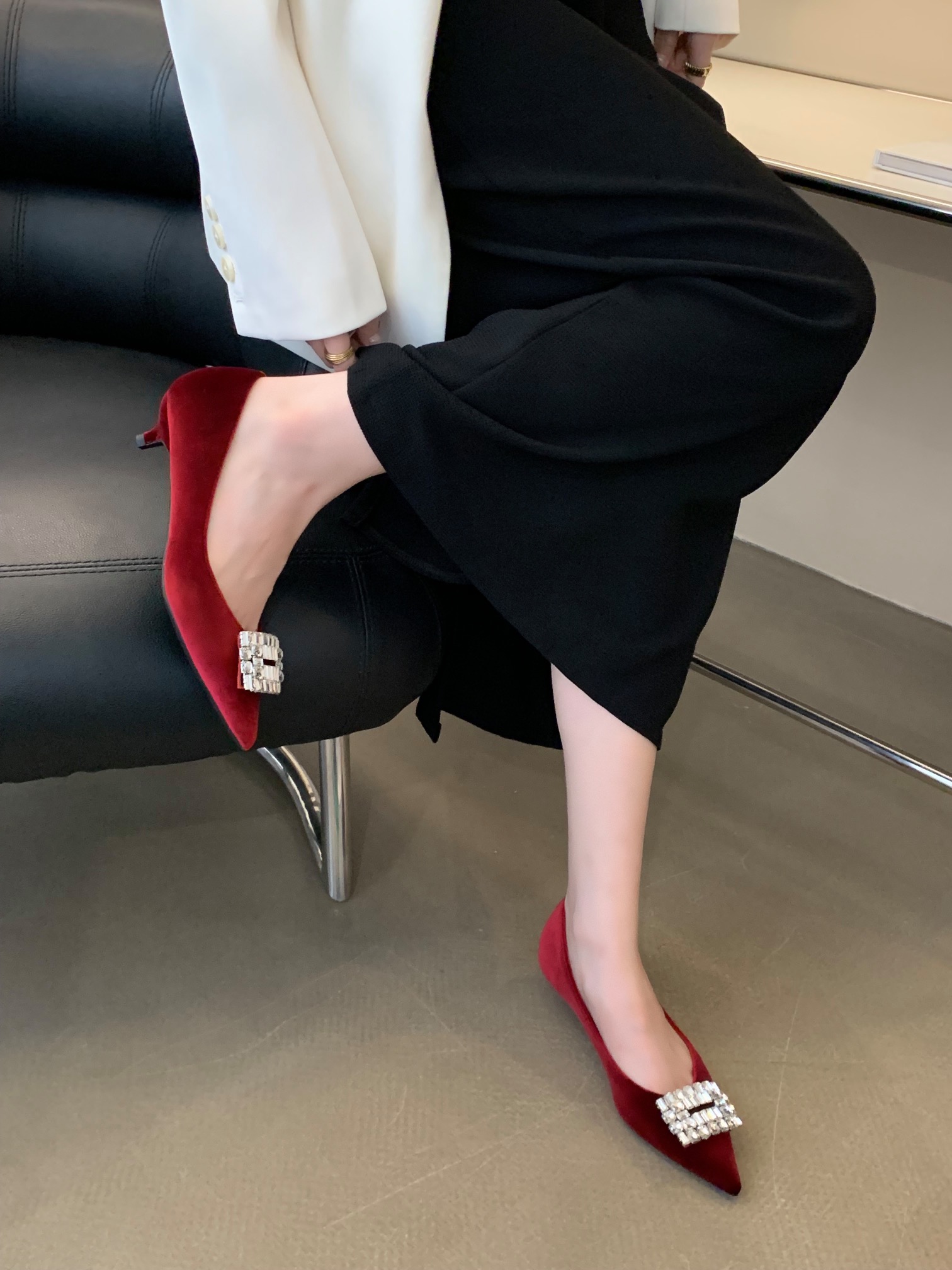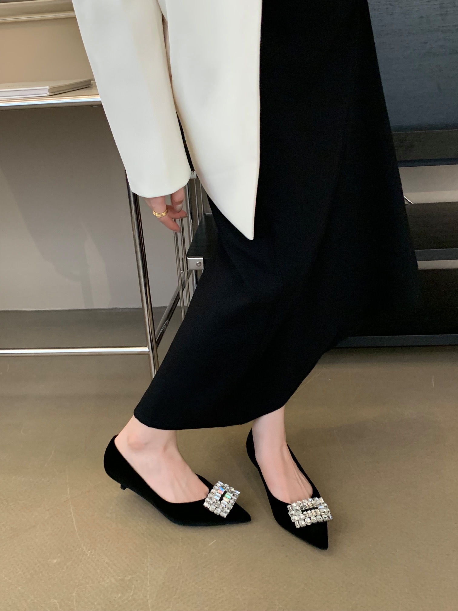 + Free ShippingFrench-style pointed-toe rhinestone suede women’s shoes with an elegant aura, featuring a soft sole and stiletto heel, exuding a gentle charm.