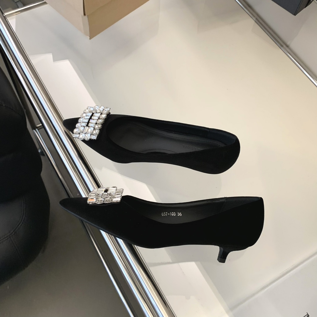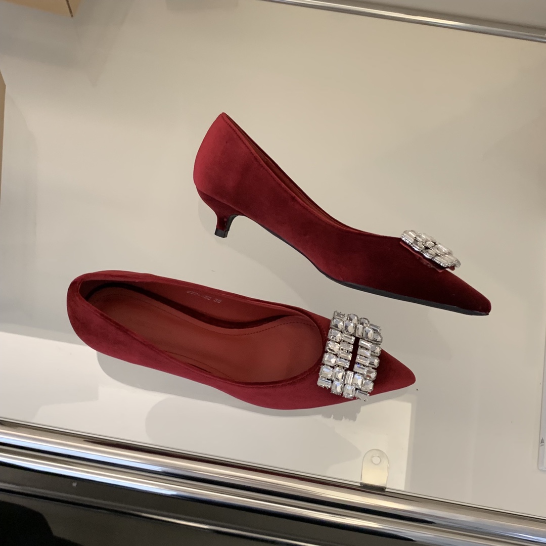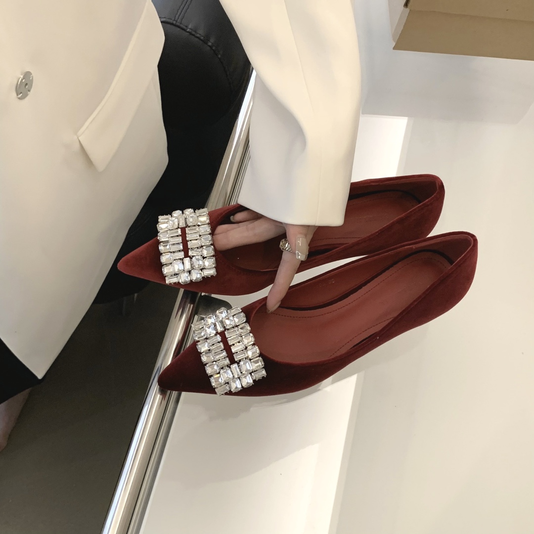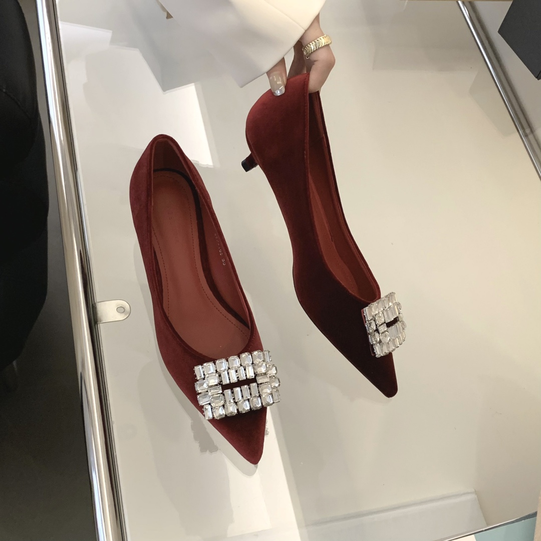 + Free ShippingFrench-style pointed-toe rhinestone suede women’s shoes with an elegant aura, featuring a soft sole and stiletto heel, exuding a gentle charm.