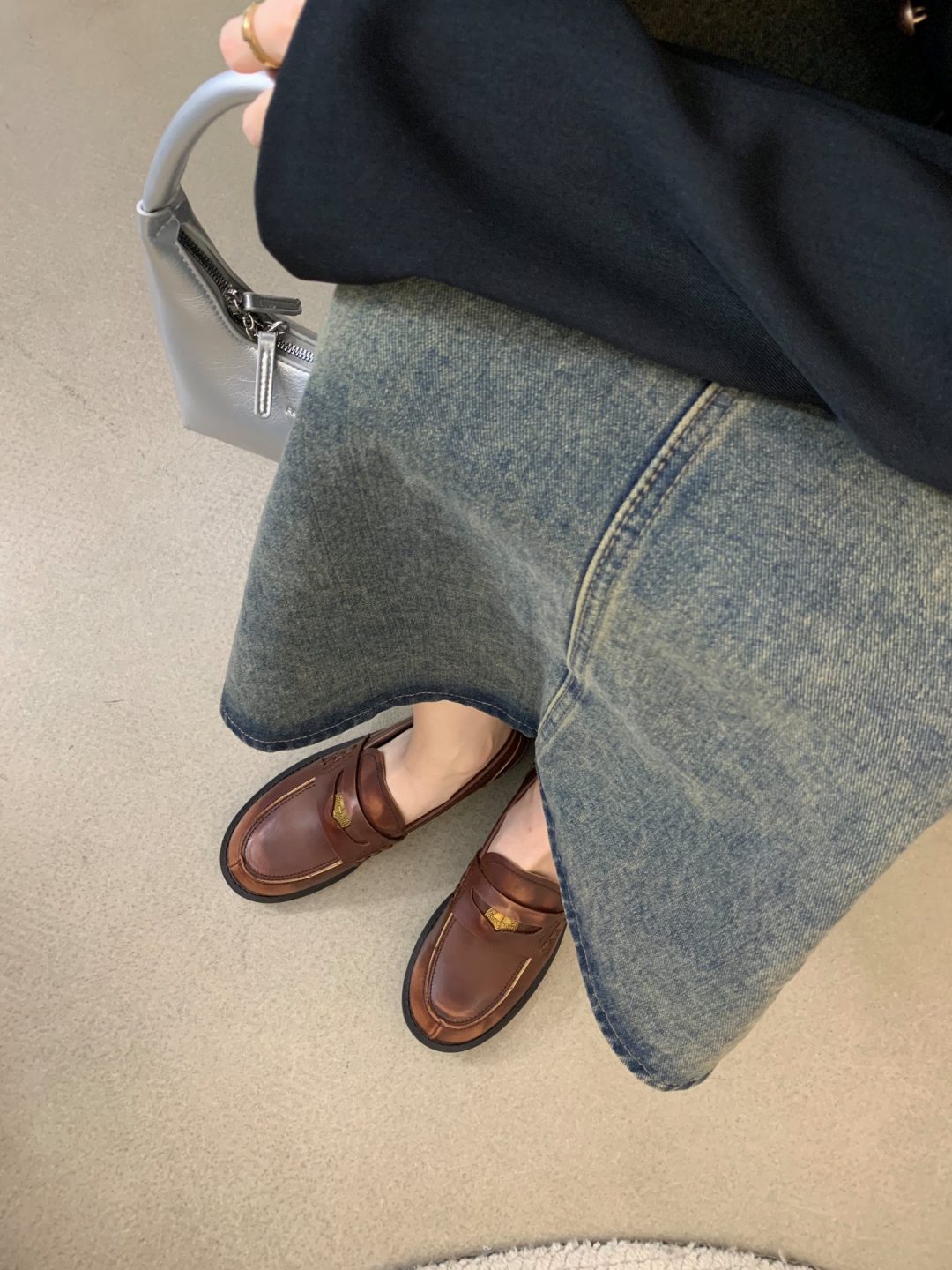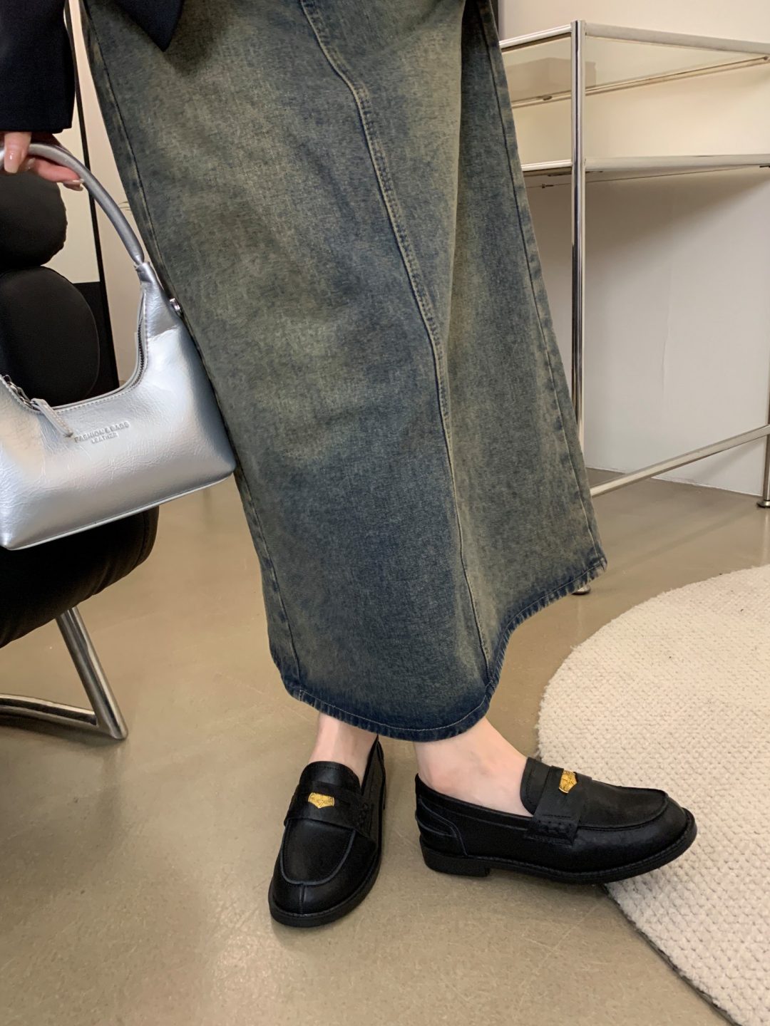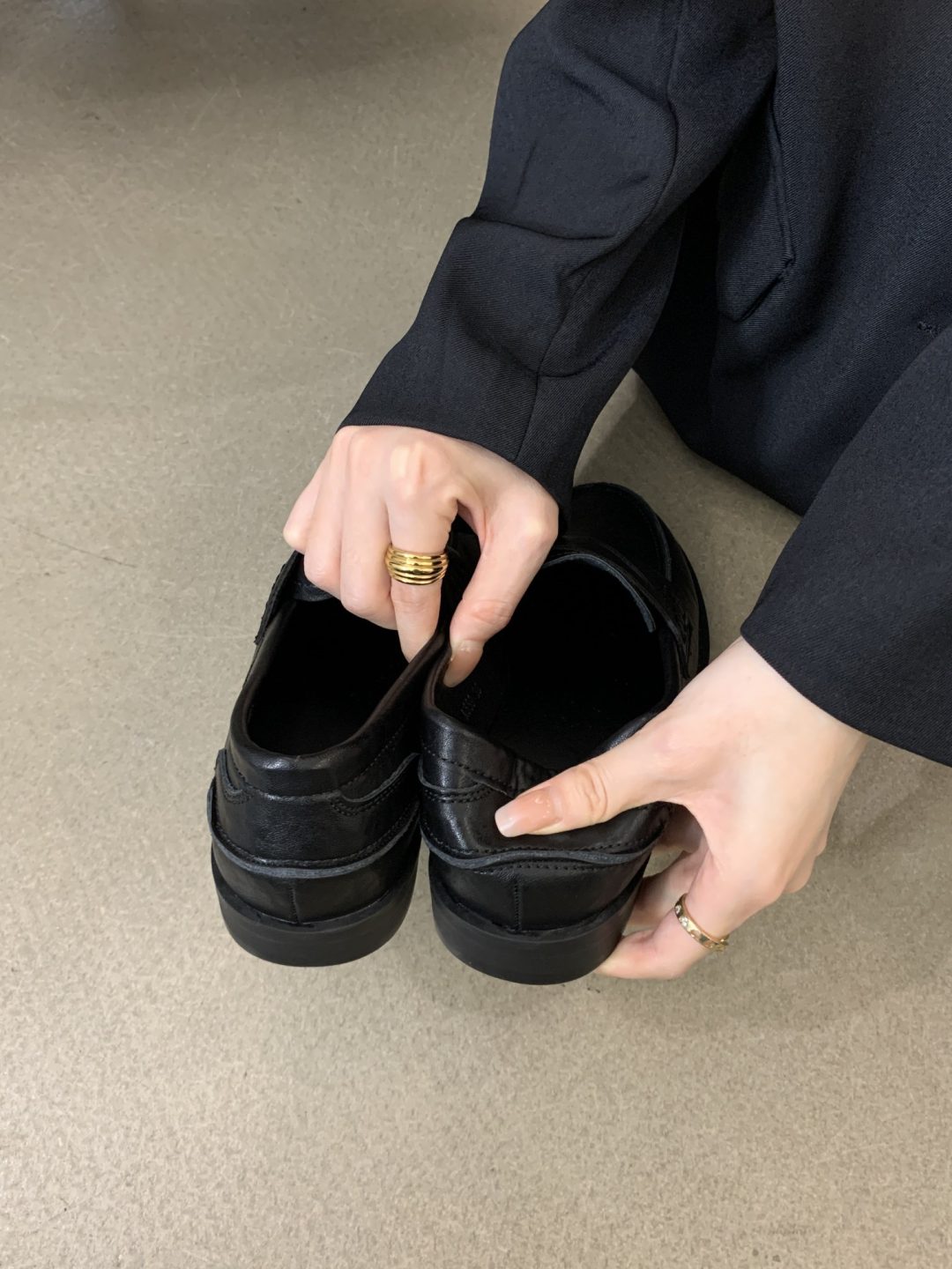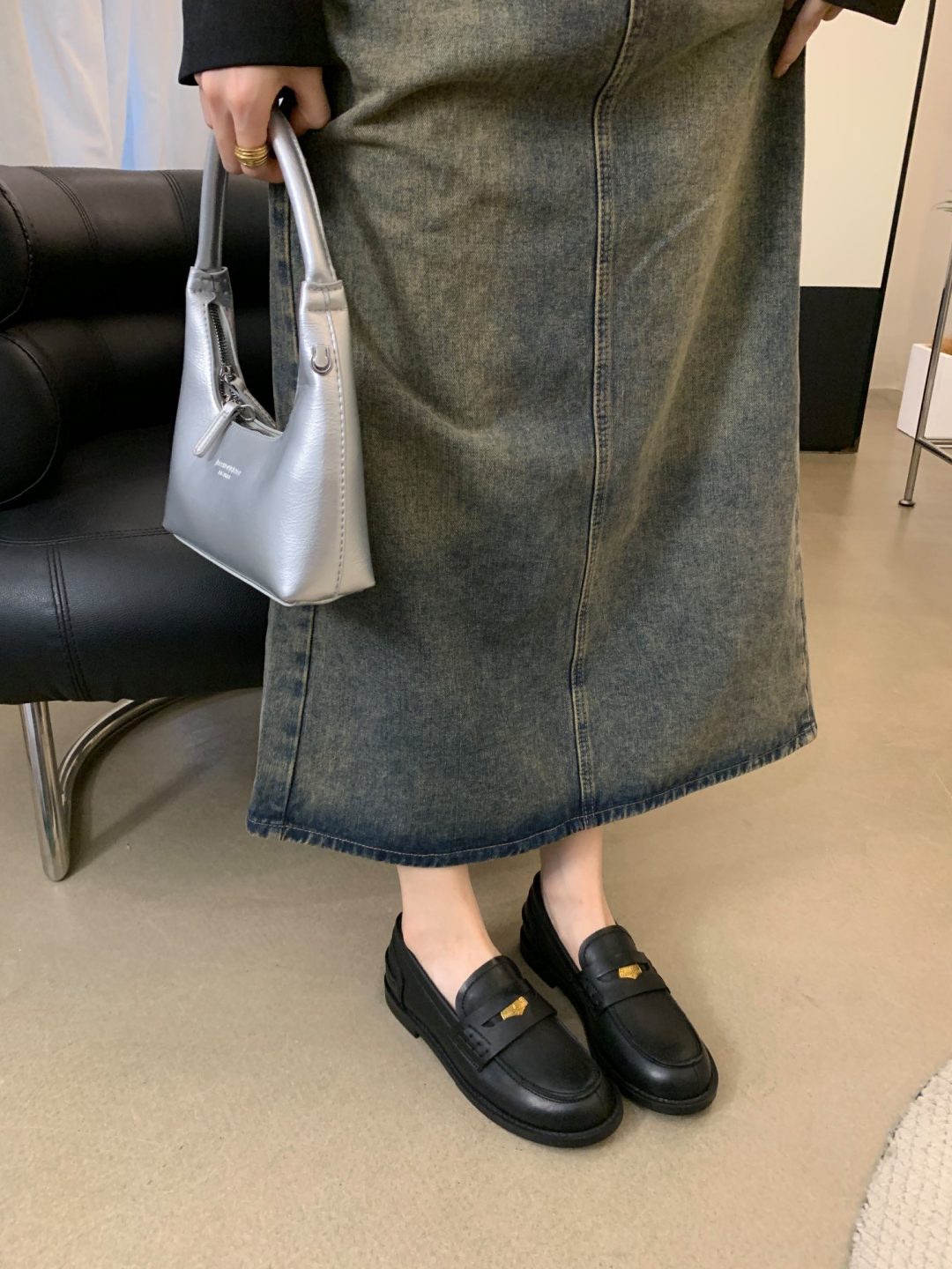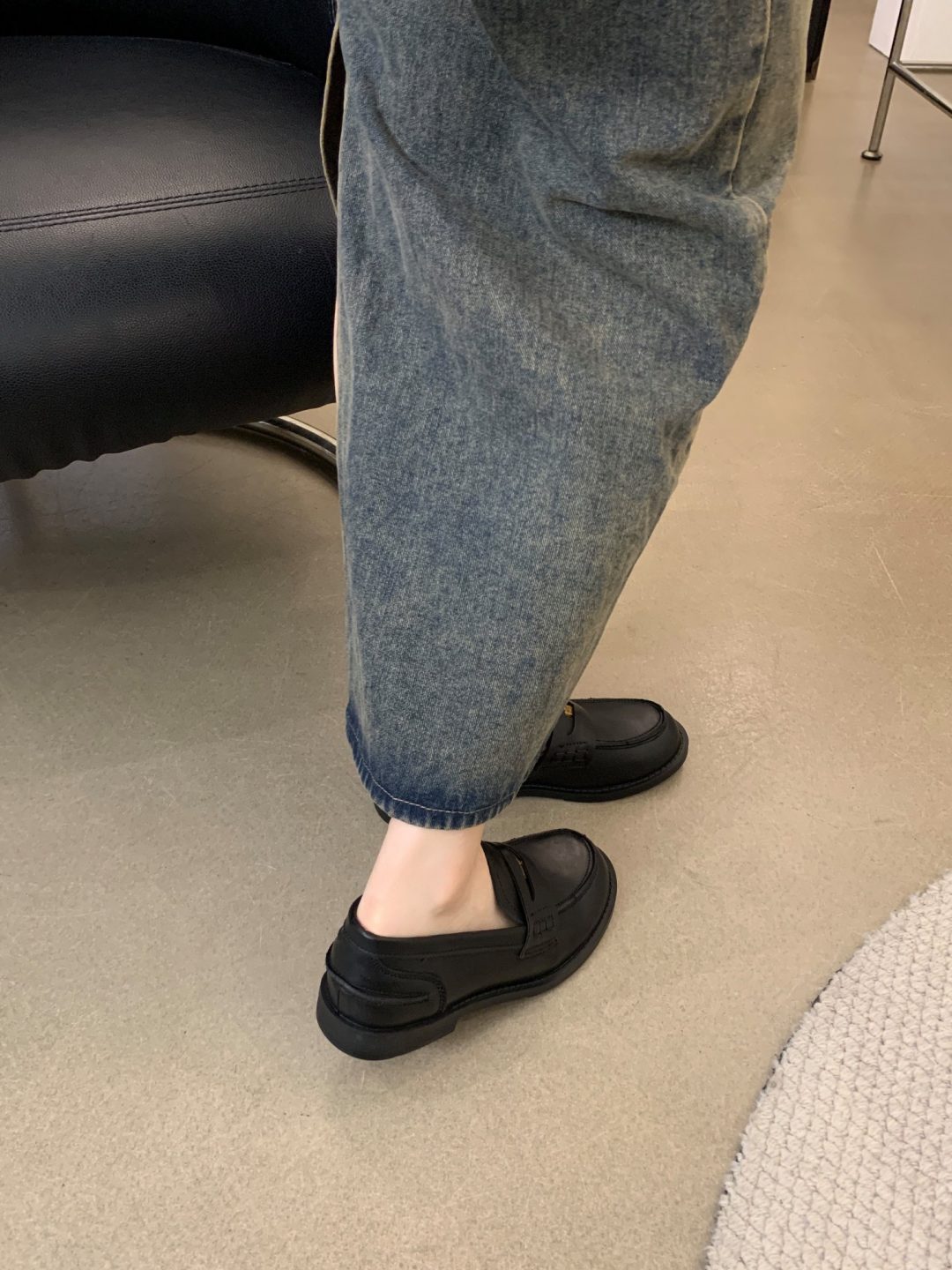 New style retro soft leather versatile casual women’s single shoes, college British-style gold-coin loafers, available in vintage brown, vintage black, and matte black.
