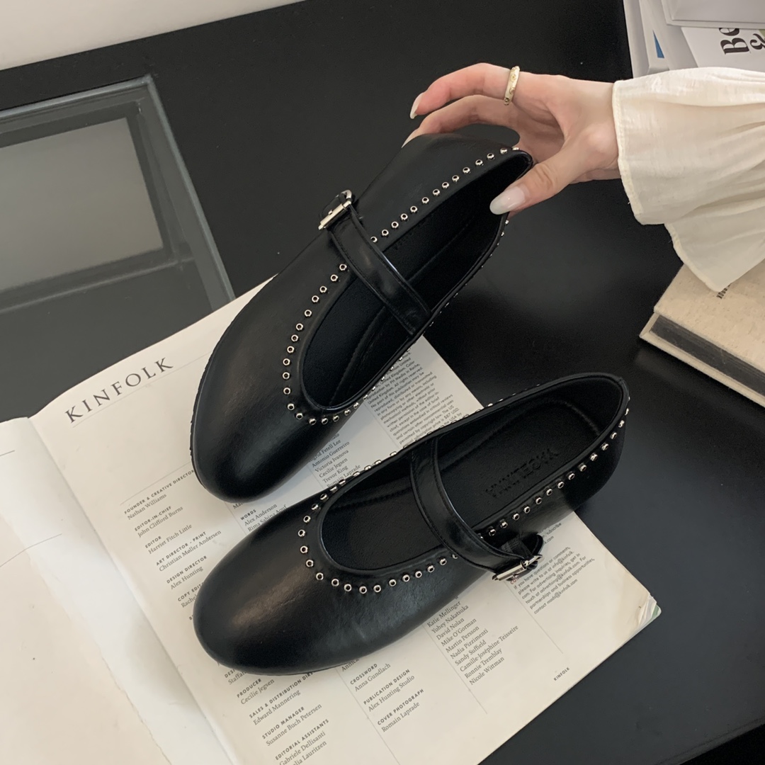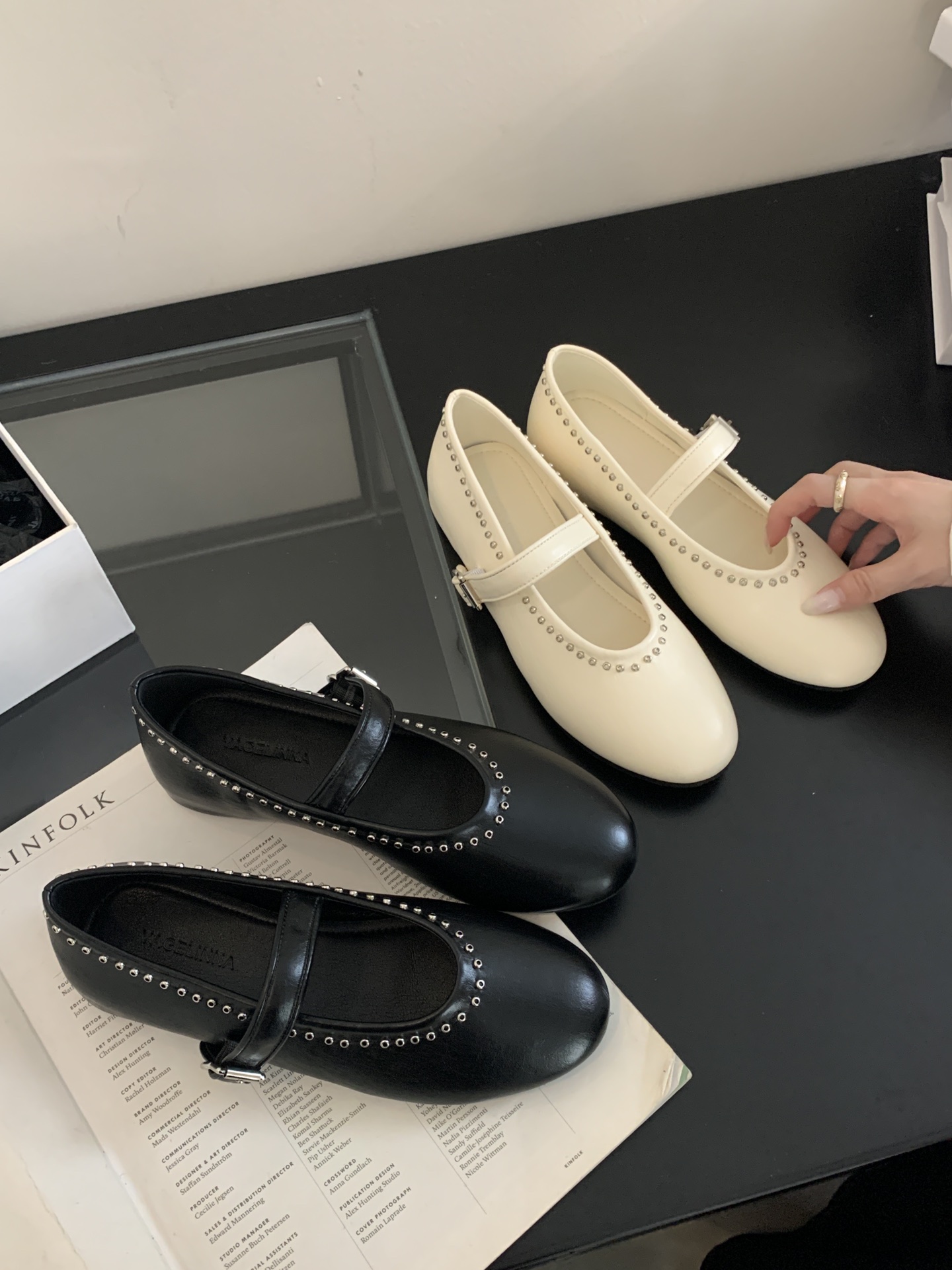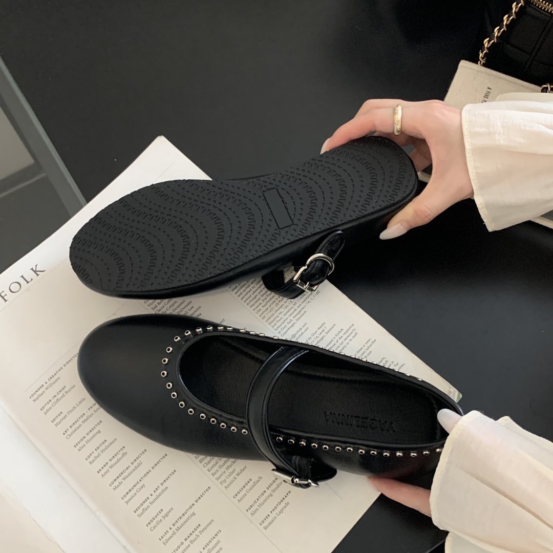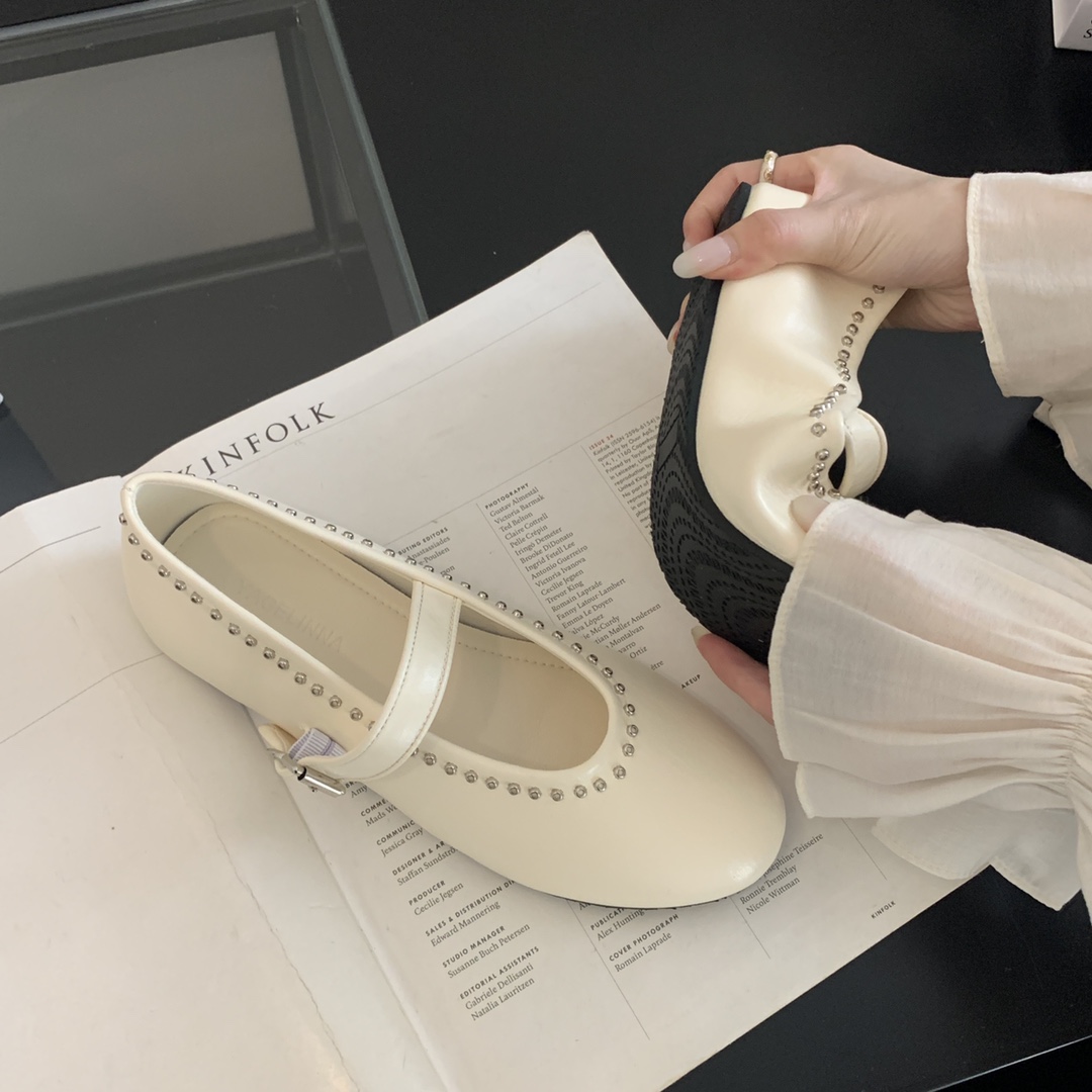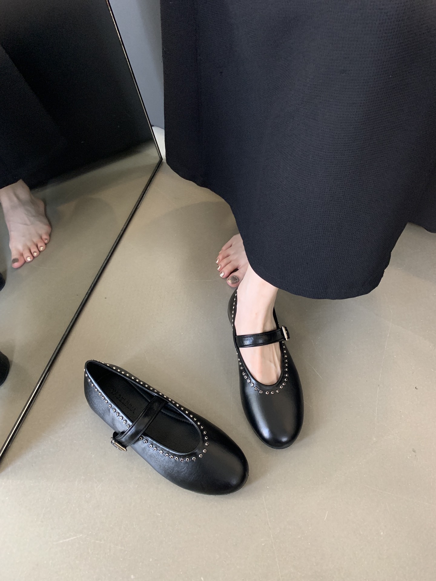 + Free ShippingFrench vintage-style round-toe women’s flat shoes with a leather buckle, featuring elegance and comfort.