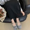 Sequin square-toe flat half-slip women’s shoes 6699-1