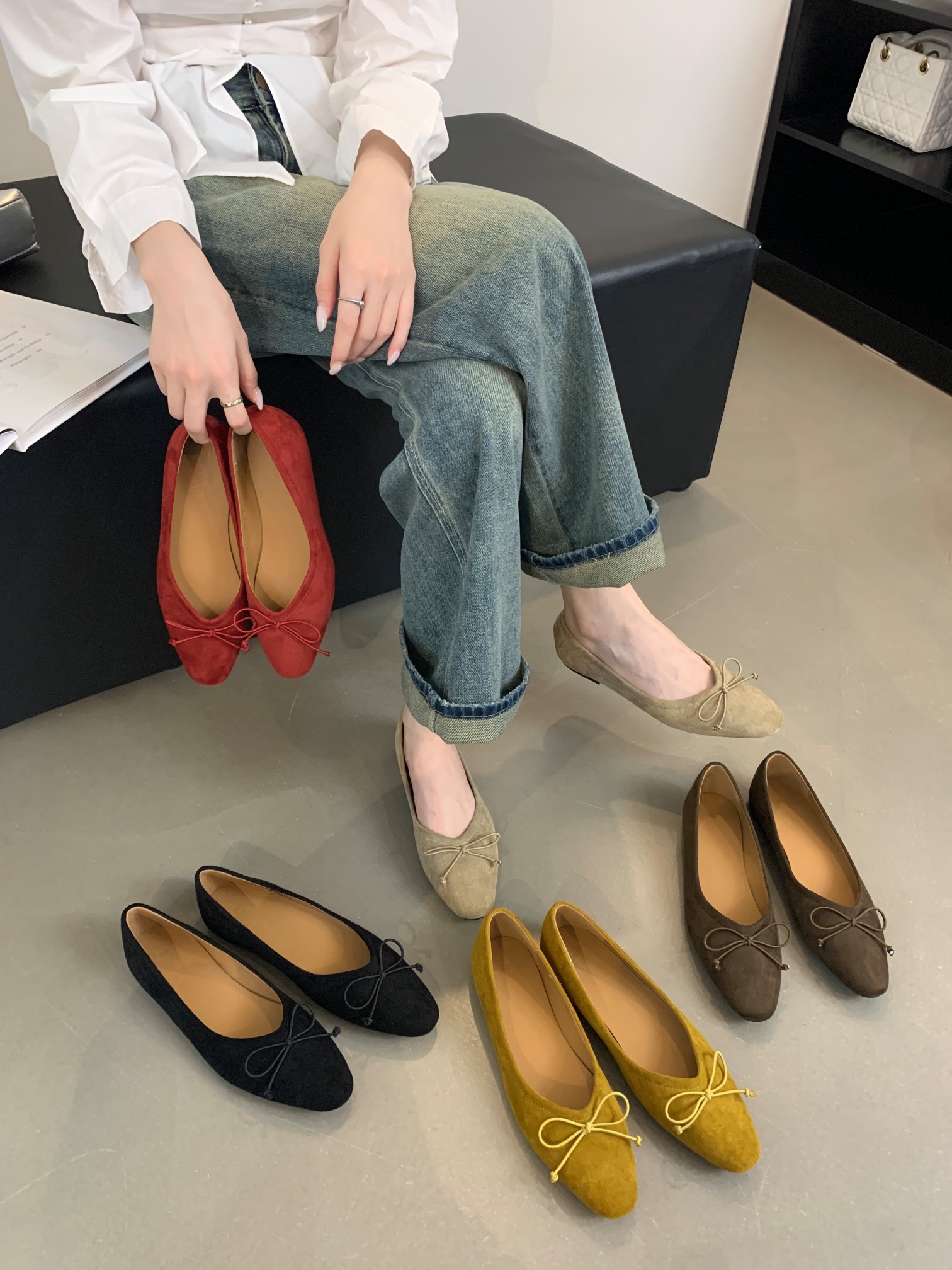 + Free ShippingFrench-style new elegant bow-tie women’s shoes with soft leather for comfort