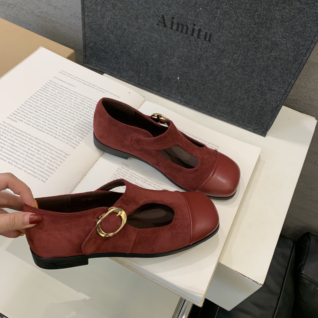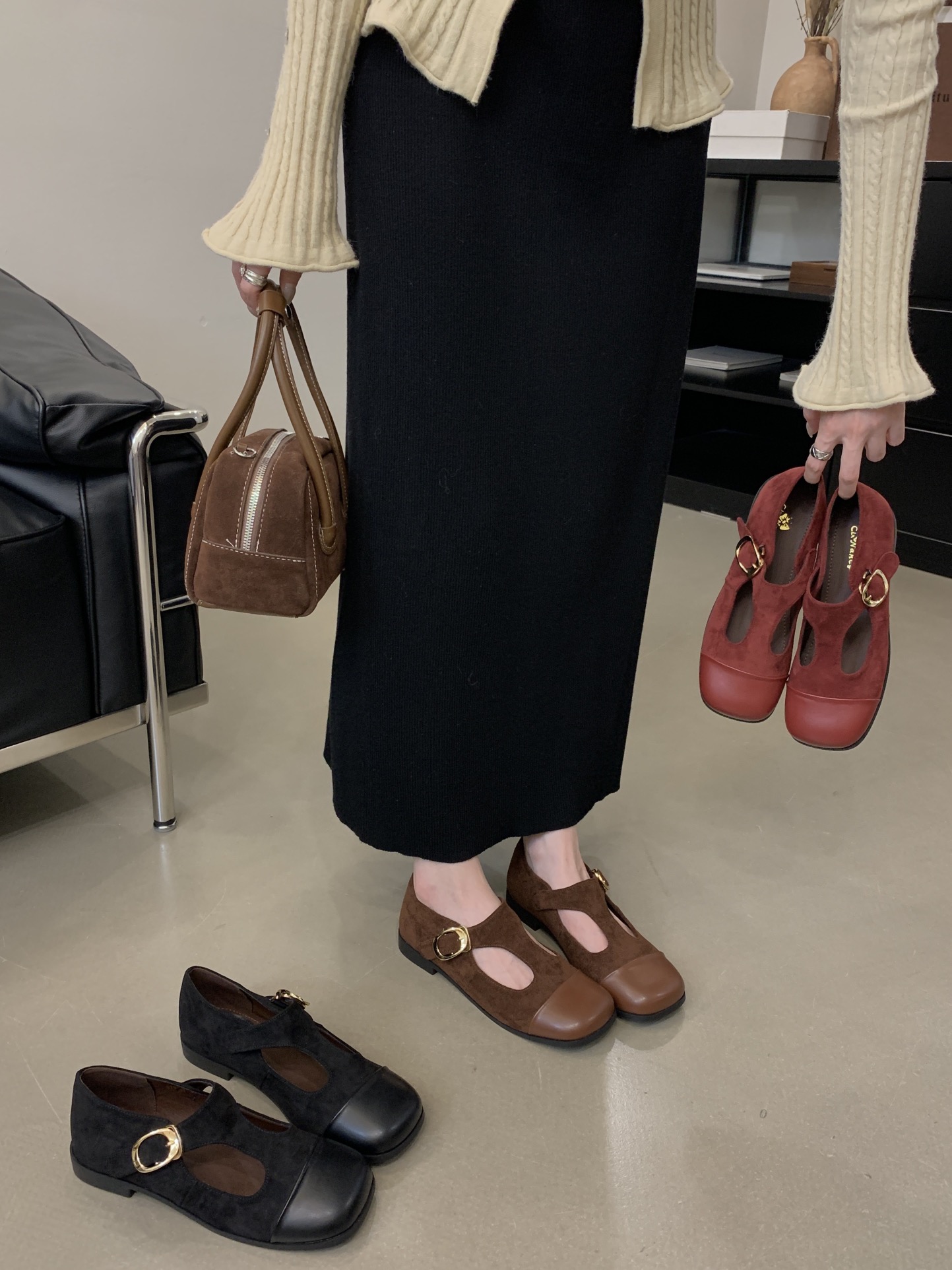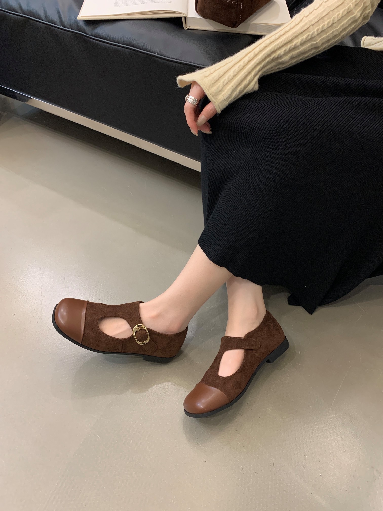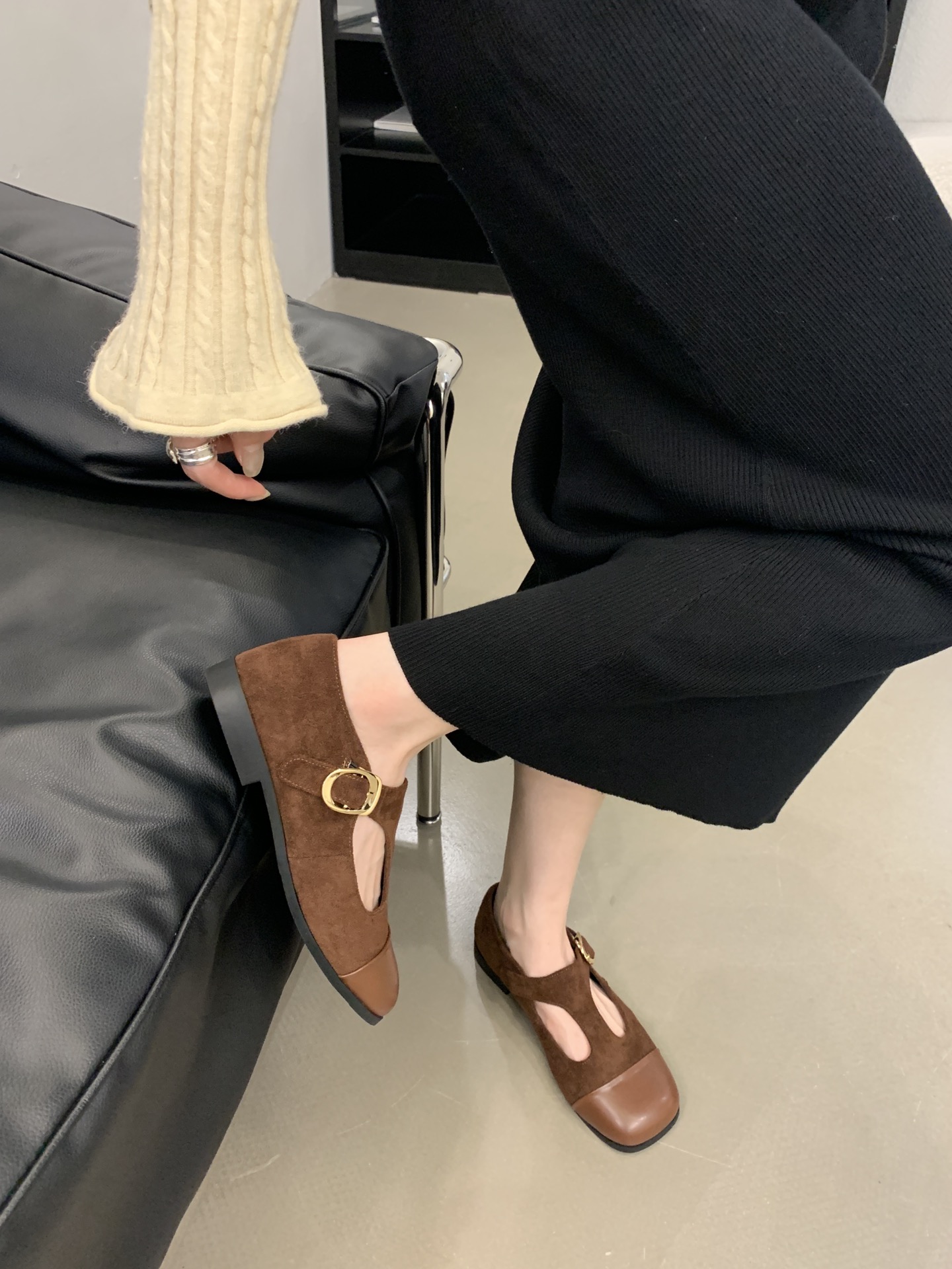 New versatile women’s flat shoes, small leather Mary Janes with a unique design and soft sole.