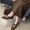 + Free ShippingRetro-styled flat Mary Jane shoes for women with crossed straps, showcasing elegance, ideal for dresses, and catering to niche tastes.