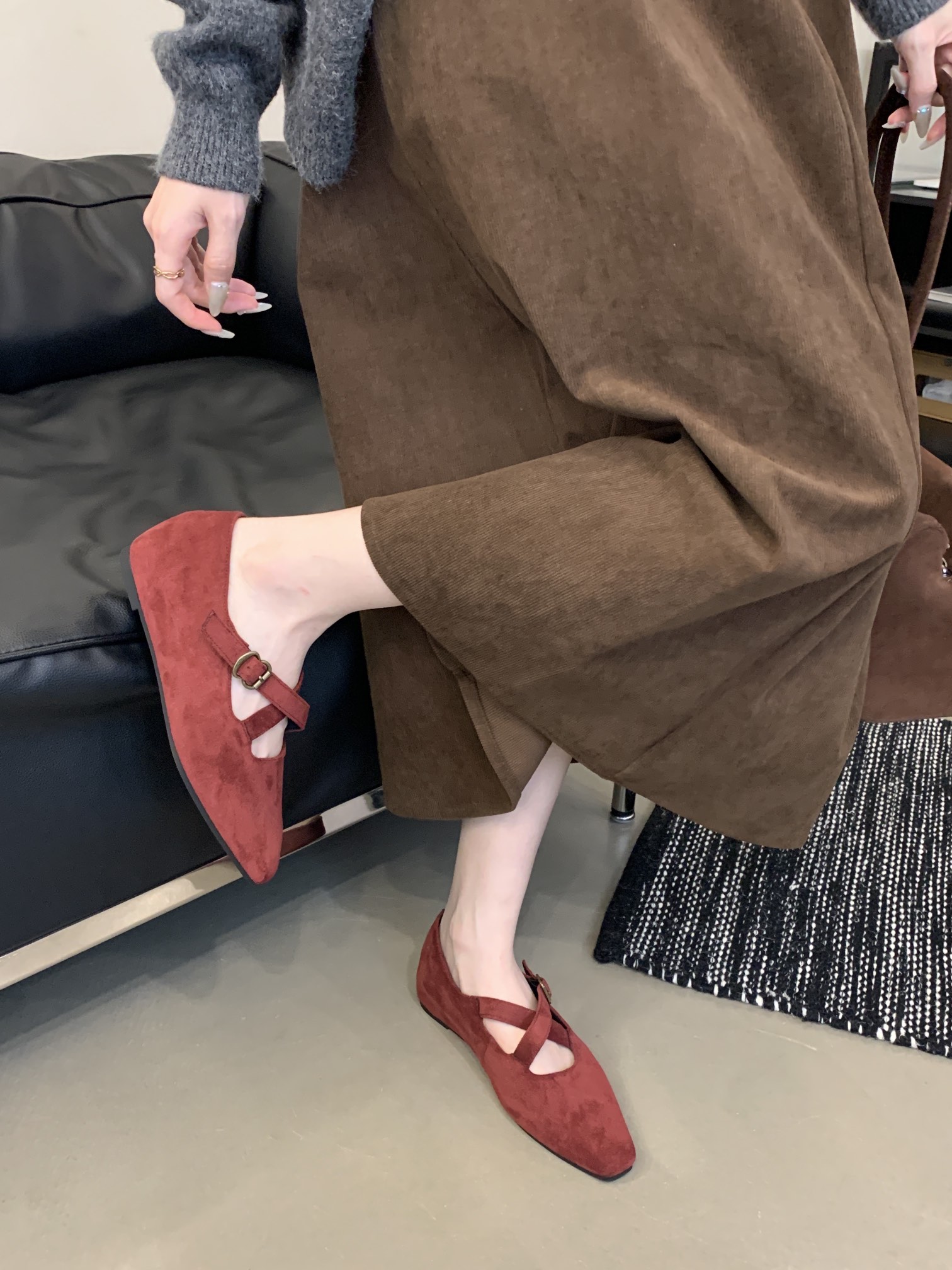 + Free ShippingRetro-styled flat Mary Jane shoes for women with crossed straps, showcasing elegance, ideal for dresses, and catering to niche tastes.