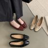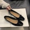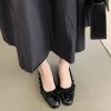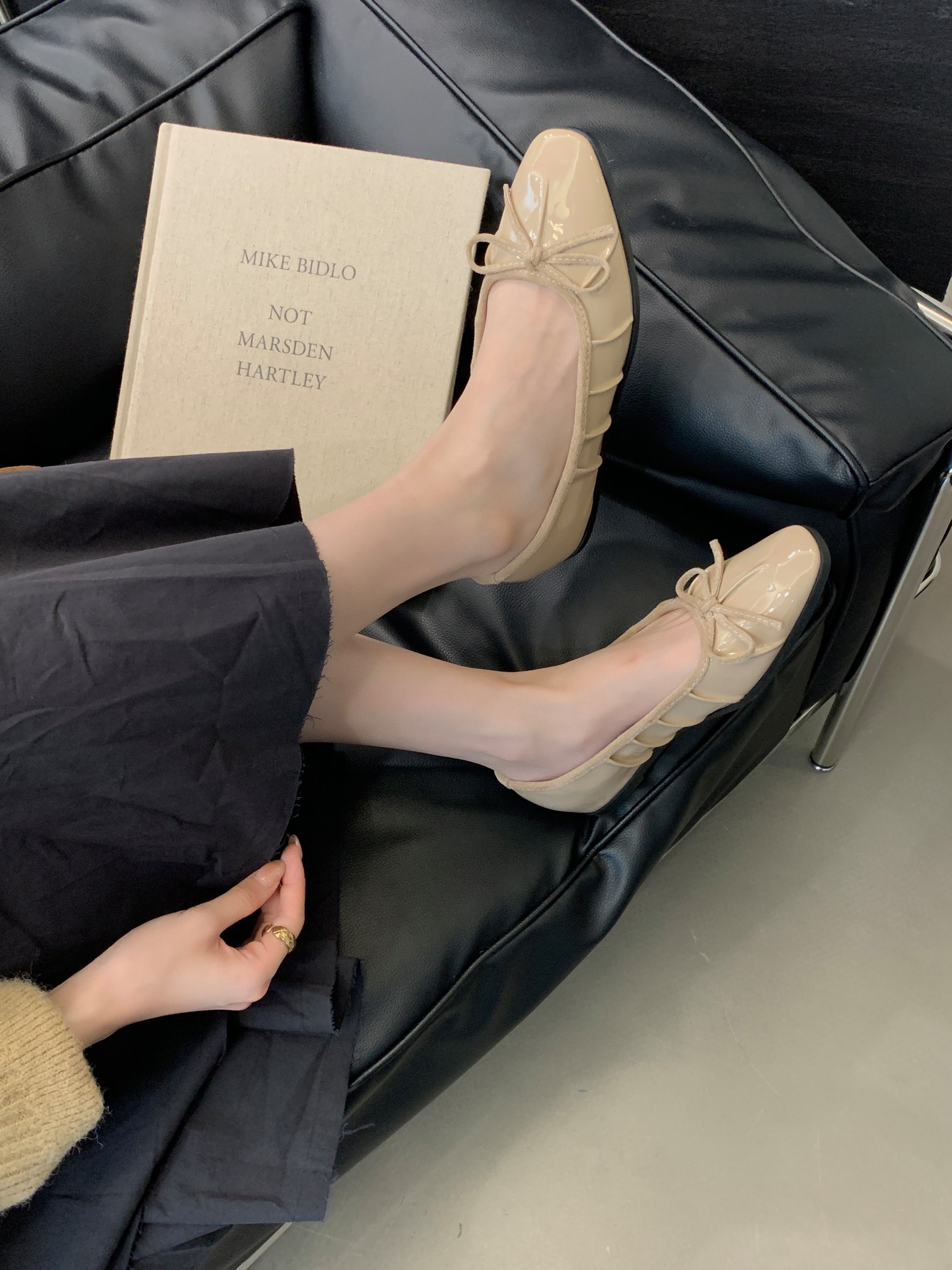 Elegant and versatile women’s shallow-cut patent leather shoes with a soft sole, square toe, bowtie decoration, and built-in heel lift.